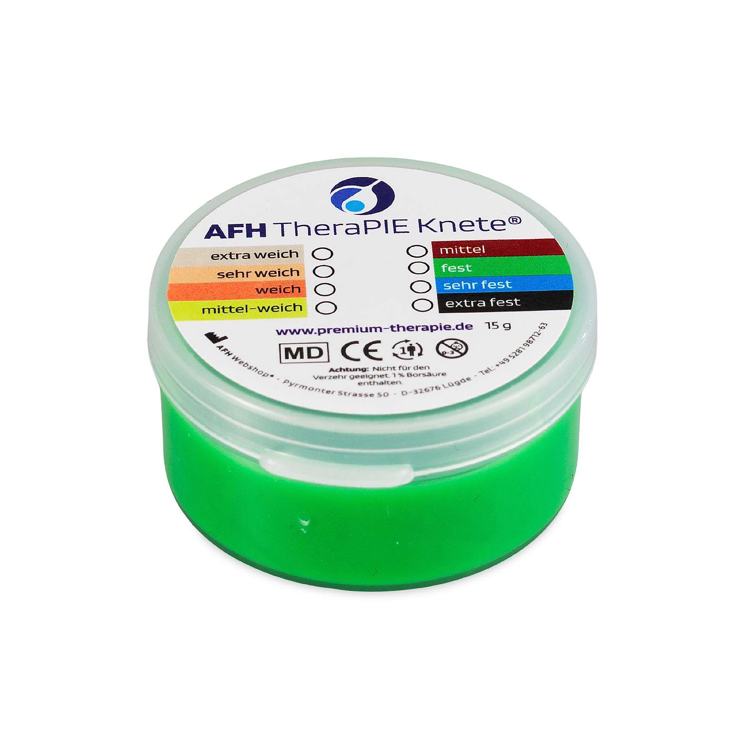 AFH Webshop Therapieknete: Grüne Festigkeit für gezielte Handkräftigung und Rehabilitation