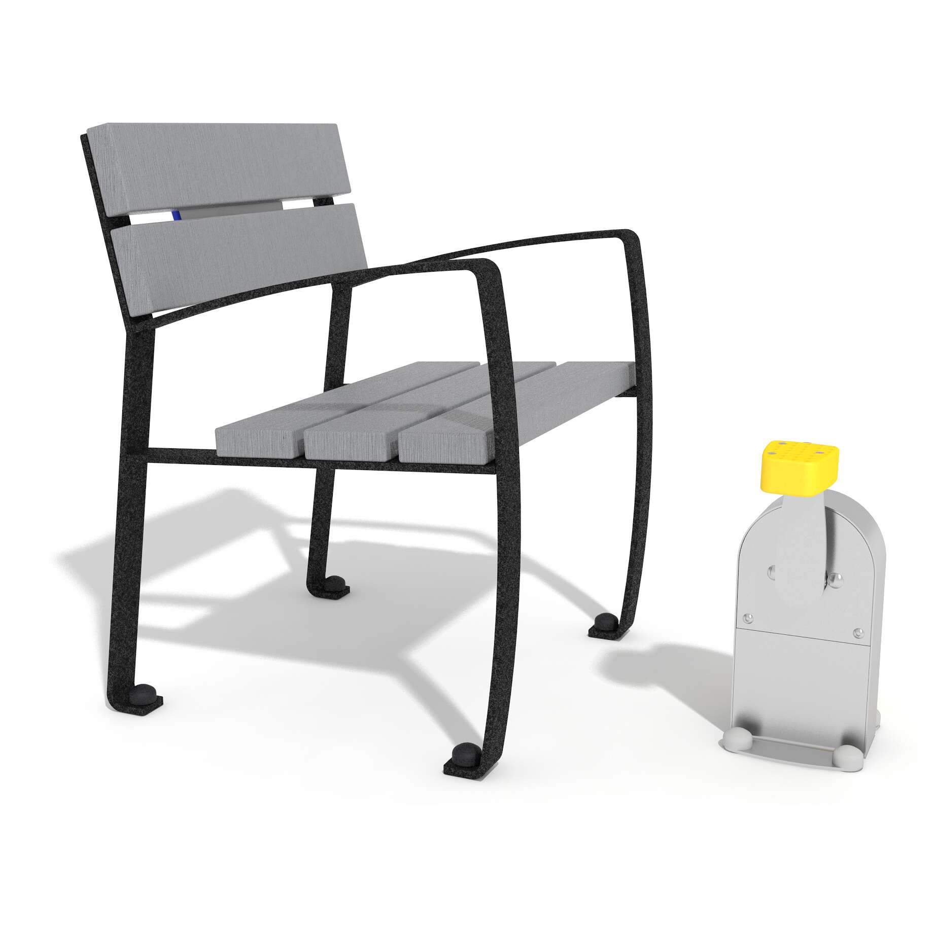 | Konstruktion | Robuste und stabile Konstruktion, ausgelegt für den Einsatz im Freien. Die Basis ist breit und schwer genug, um ein Umkippen auch bei intensiver Nutzung zu verhindern. |
