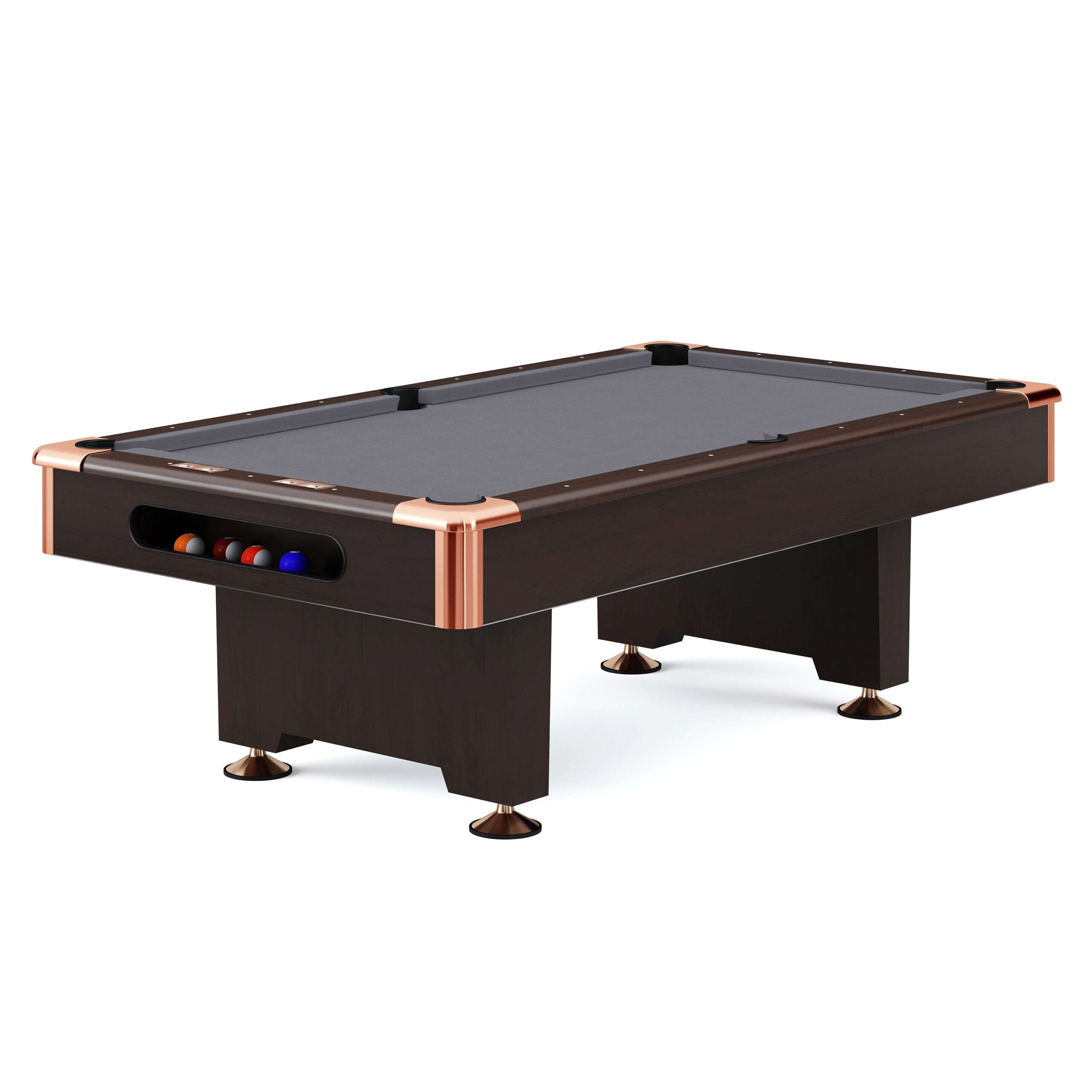 Der „Club Pro III“ ist nicht nur ein Spielgerät von höchster Qualität, sondern auch ein Designobjekt, das Ihrem Raum eine besondere Atmosphäre verleiht. Das Zusammenspiel des warmen, natürlichen Nussbaum-Dekors mit dem modernen, dezenten Grey schafft einen stilvollen Kontrast. Diese Farbgebung fügt sich nahtlos in eine Vielzahl von Einrichtungsstilen ein, von klassisch-elegant bis hin zu modern und minimalistisch. Ob im privaten Spielzimmer, im exklusiven Herrenzimmer oder als zentrales Element einer Lounge – dieser Billardtisch wird zum Blickfang und zum Treffpunkt für gesellige Stunden.
