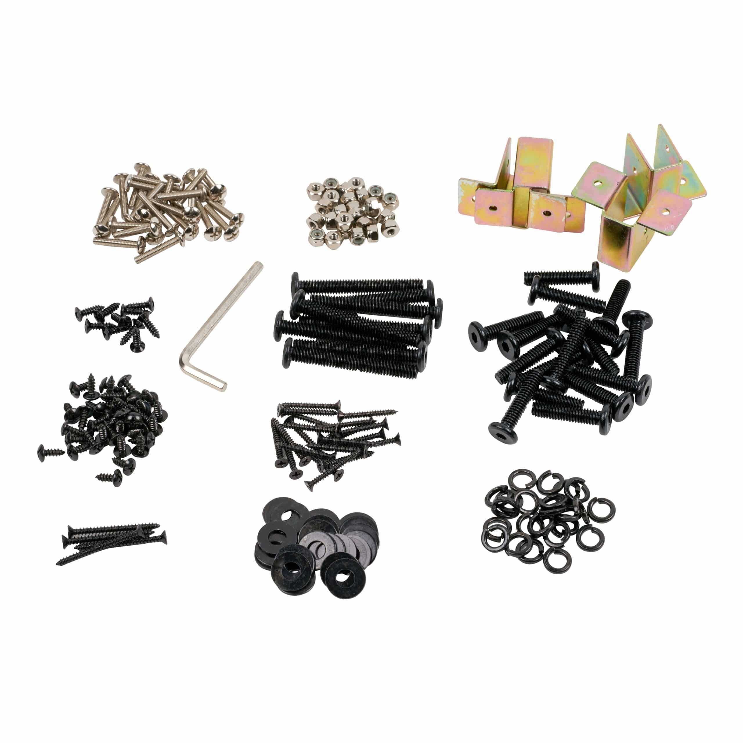 Das Set enthält eine Auswahl an Schrauben, Muttern und Unterlegscheiben, die für die verschiedenen mechanischen Komponenten Ihres Tischkickers benötigt werden. Dazu gehören Schrauben für die Befestigung der Spielfiguren, für die Stangenführungen sowie für diverse Gehäuseteile.