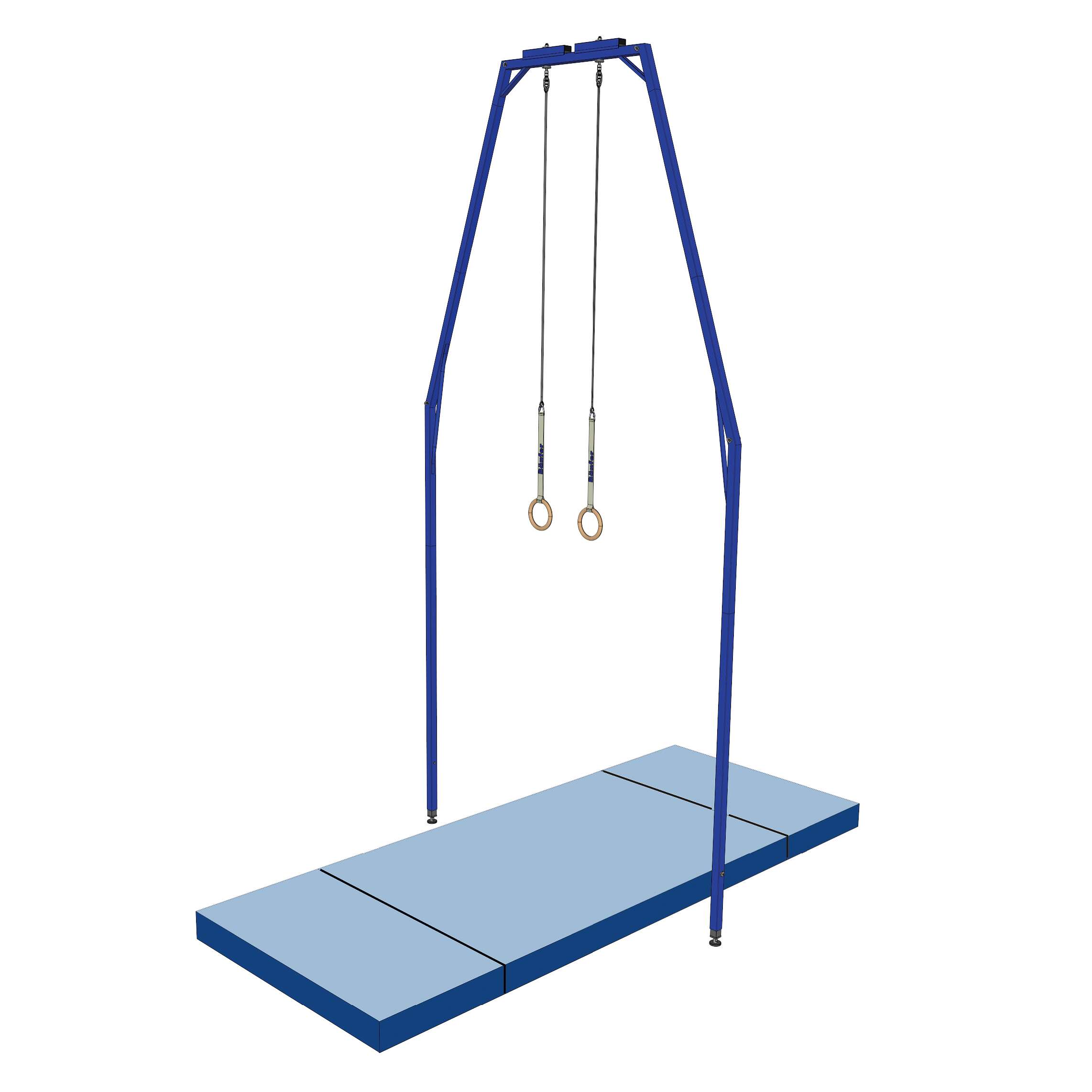 Auf diesem Ringegerüst können sämtliche Übungen des Ringturnens absolviert werden, von grundlegenden Kraftübungen über Schwünge und Halteübungen bis hin zu komplexen dynamischen Elementen und Flugteilen im Rahmen der Wettkampfvorbereitung.
