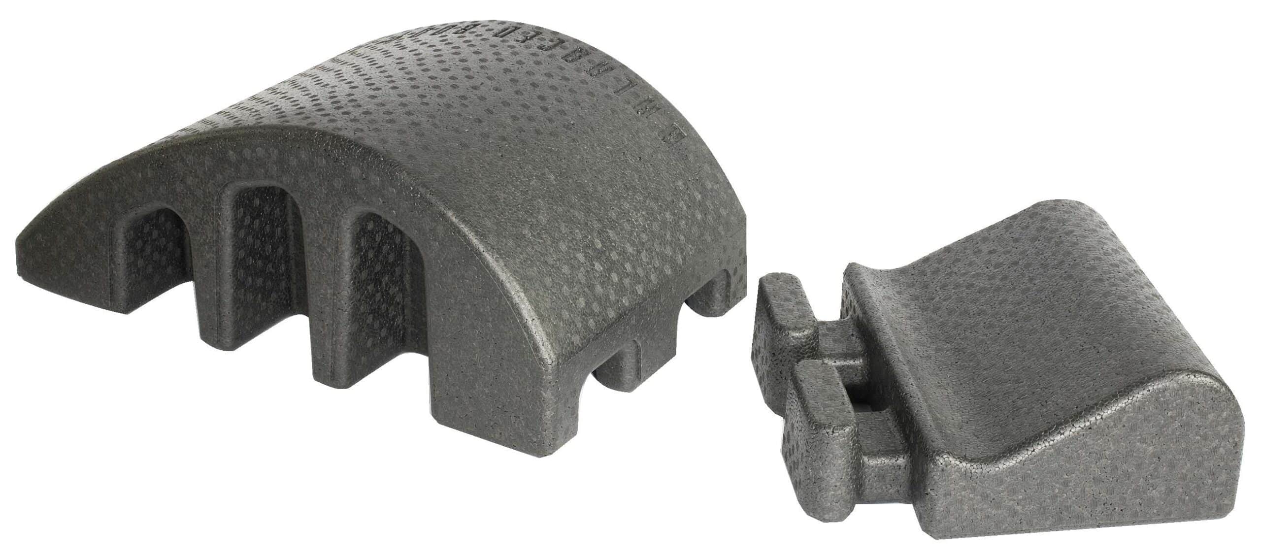 | Formgebung | Ergonomisch geschwungene Form, die sich der natürlichen Krümmung der Wirbelsäule anpasst und gezielte Unterstützung und Dehnung ermöglicht. |