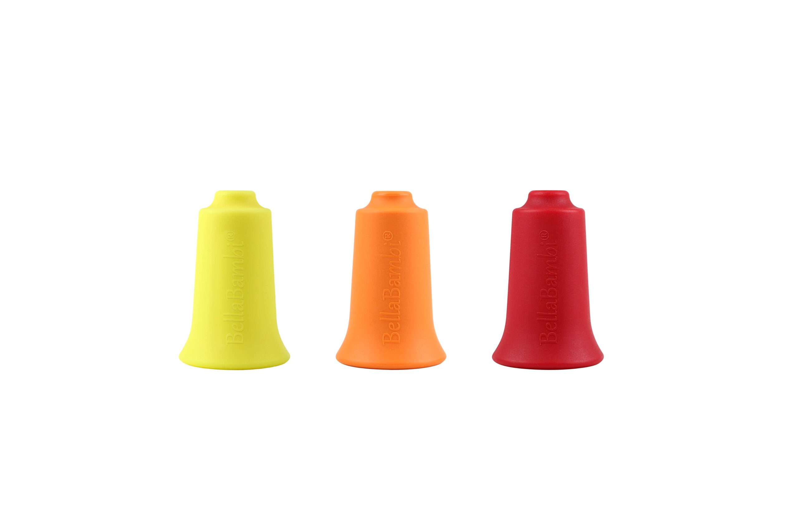 Die Farbkodierung (Gelb, Orange, Rot) gibt Aufschluss über die Saugintensität. Gelb ist am sanftesten und eignet sich für empfindliche Bereiche. Orange bietet eine mittlere Intensität für moderate Verspannungen, während Rot die stärkste Saugkraft für tiefere Gewebsschichten bereitstellt. Die tatsächliche Intensität wird durch die Kompression der Glocke vor dem Aufsetzen auf die Haut angepasst.
