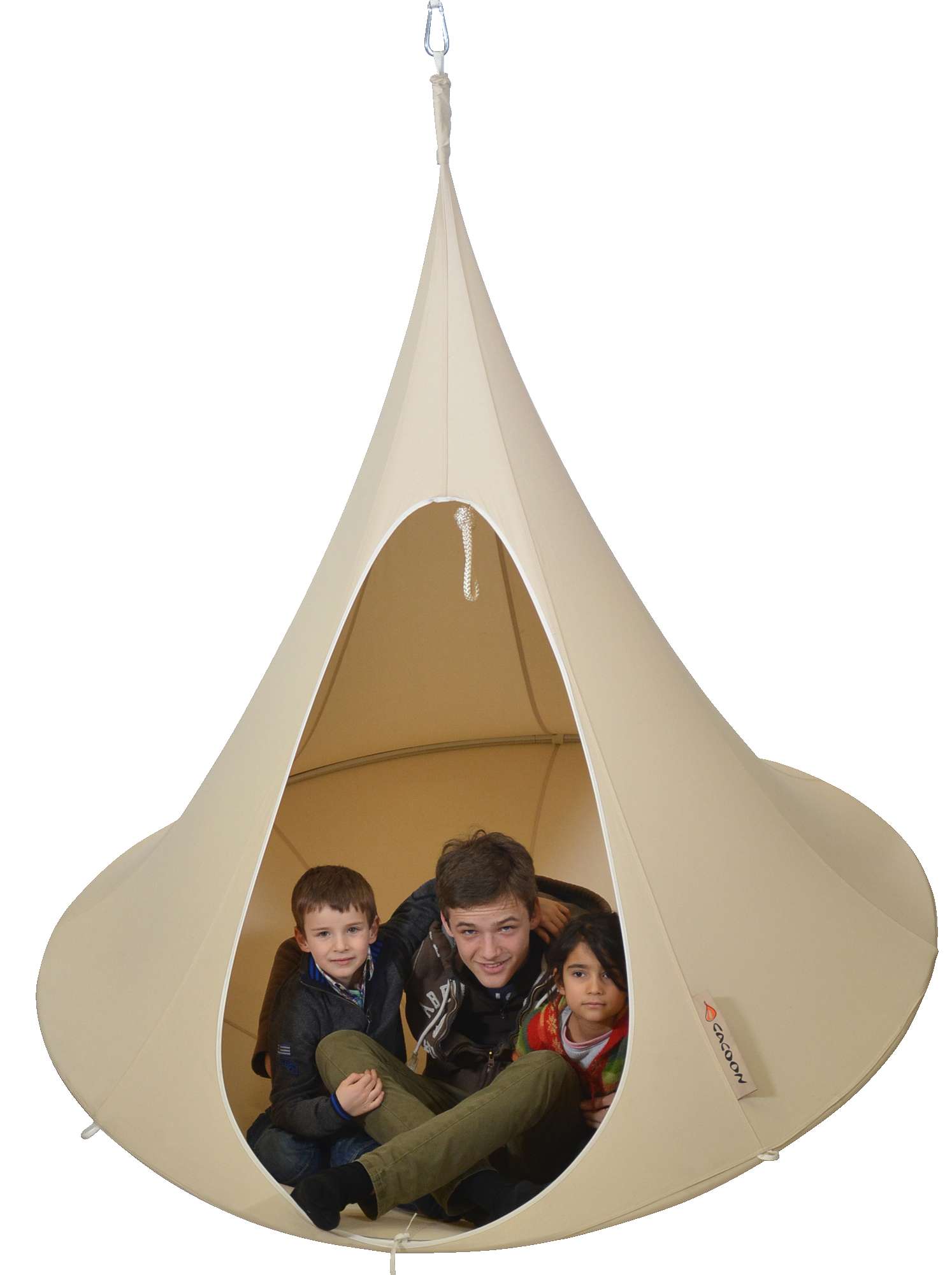 Die Cacoonworld Hängehöhle „Cacoon“ in der Double-Variante ist für eine maximale Belastbarkeit von bis zu 200 kg ausgelegt. Dies ermöglicht komfortables Entspannen für zwei Erwachsene oder mehrere Kinder.