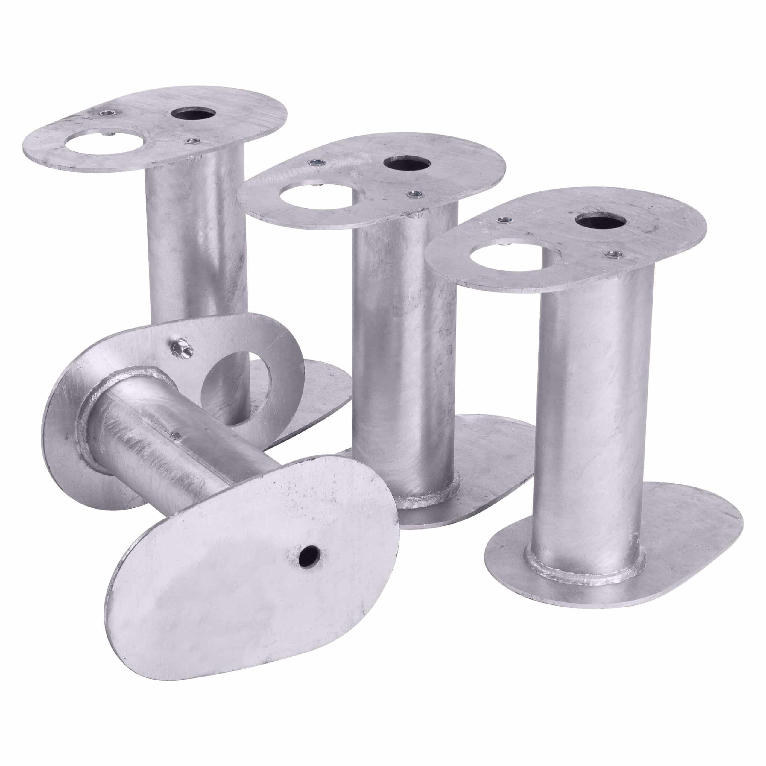 | Erdspieße | Robuste Stahlspieße mit einer Länge, die eine tiefe und sichere Verankerung im Erdreich ermöglicht. Die Formgebung unterstützt ein leichtes Eindringen in den Boden und maximiert die Auflagefläche für Stabilität. |