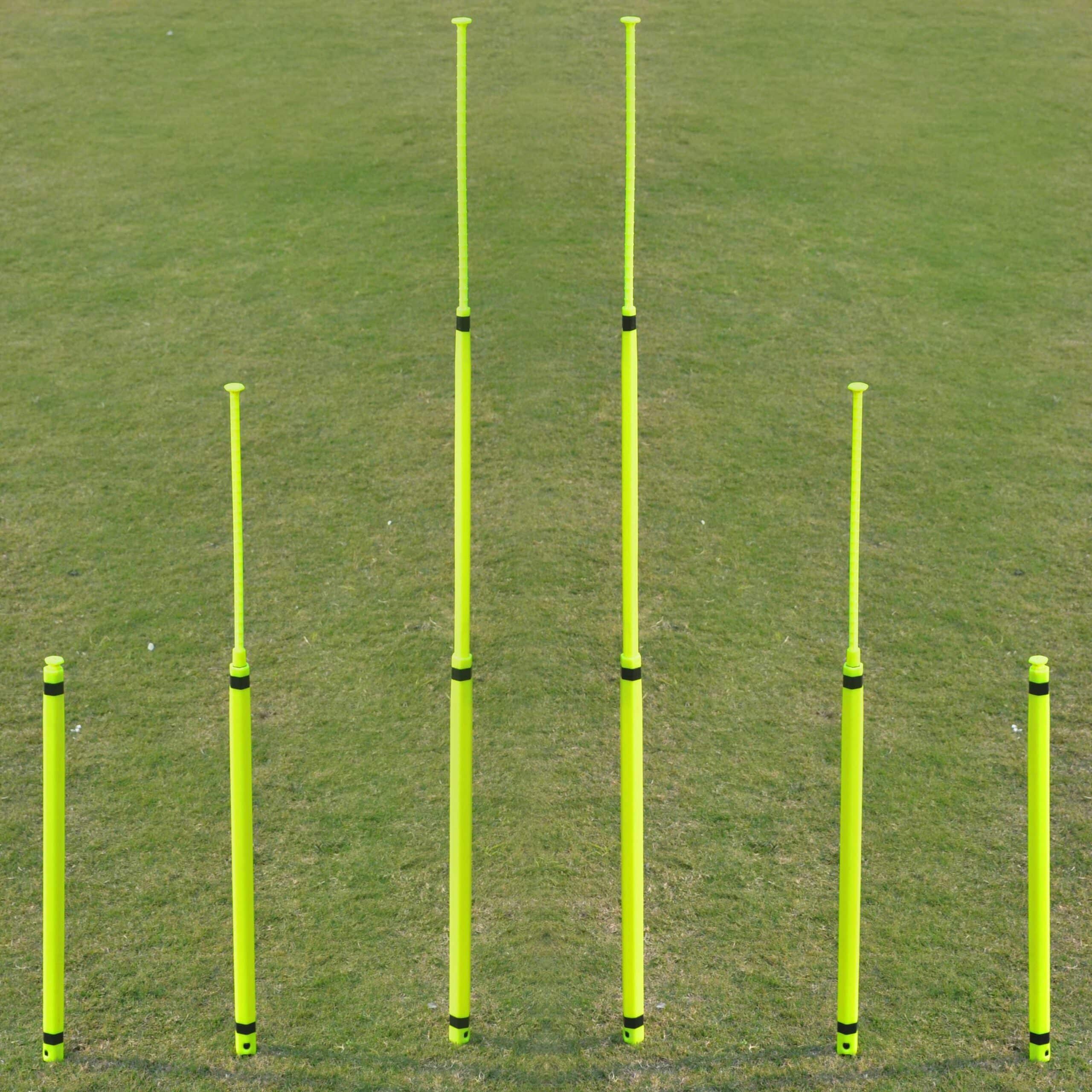 | Anzahl pro Set | Typischerweise 10 Stangen (variiert je nach SKU – genaue Stückzahl der Produktlistung zu entnehmen). Dies ermöglicht die Gestaltung komplexer Trainingsparcours. |