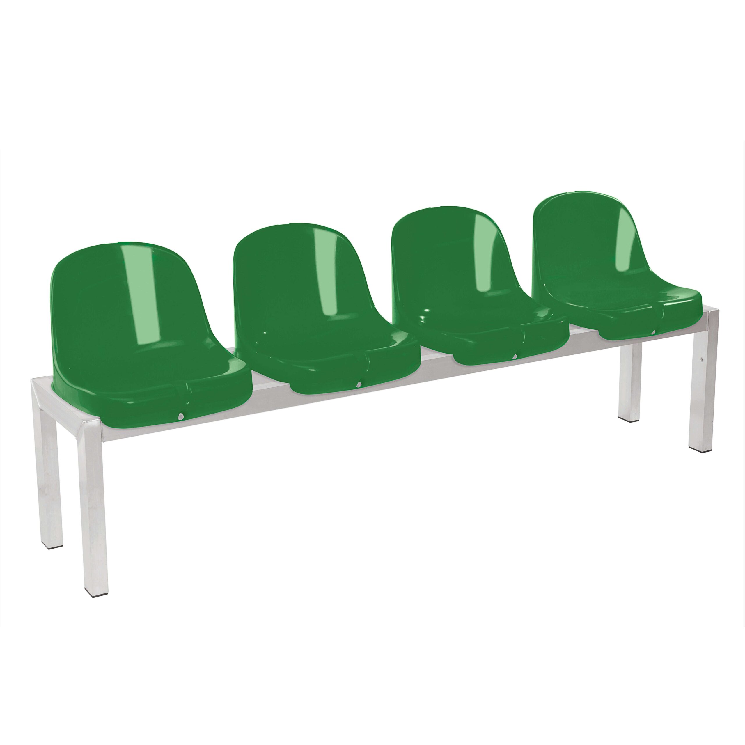 Die Sitzbank besteht aus einem stabilen Gestell aus Holzwerkstoff, einer Polsterung aus hochwertigem Schaumstoff und einem strapazierfähigen Textilgewebe als Bezug in Dunkelgrün (RAL 6001).