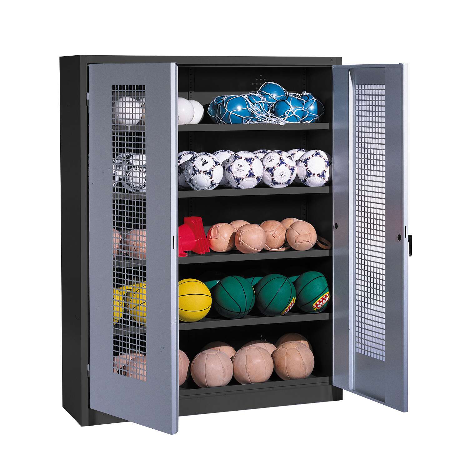 C+P Ballschrank mit Lochblech-Flügeltüren (Typ 3): Optimale Organisation für Sportausrüstung und mehr