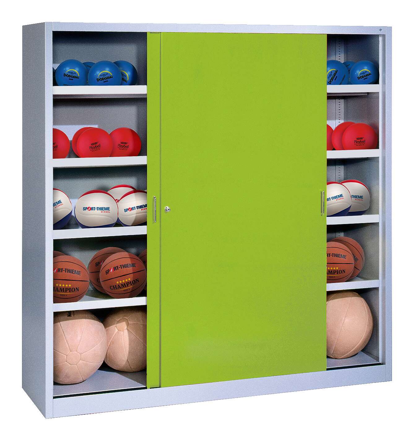 Häufig gestellte Fragen zu C+P Ballschrank mit Vollblech-Schiebetüren (Typ 4), HxBxT: 195x120x60 cm, Clowngrün (RAL 110 80 60), Lichtgrau (RAL 7035), Einzelschließung