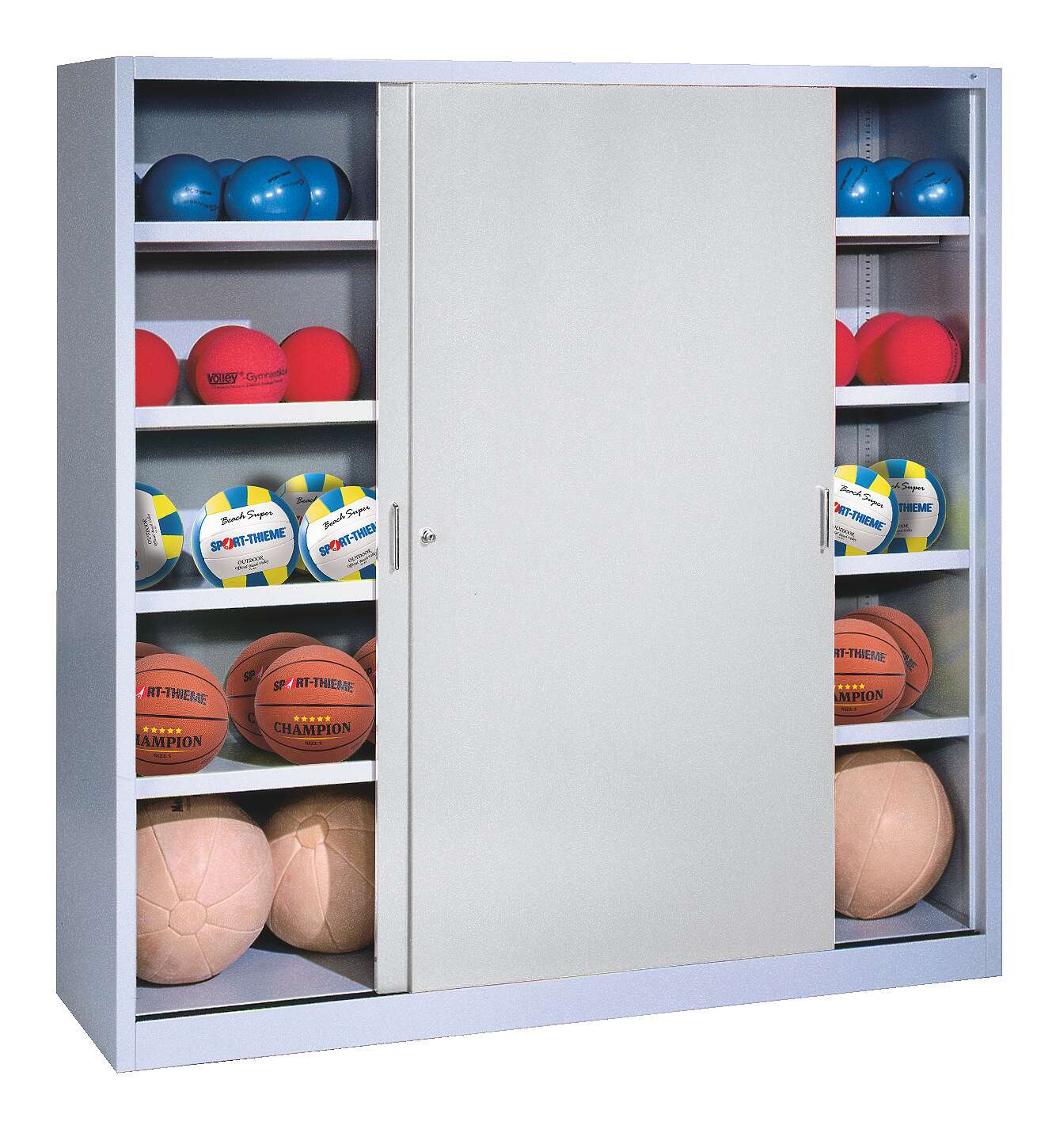 Der C+P Ballschrank mit Vollblech-Schiebetüren (Typ 4) ist die ideale Lösung für Vereine, Schulen und Sporteinrichtungen, die eine robuste und platzsparende Aufbewahrung für Sportgeräte, insbesondere Bälle, benötigen. Mit seinen großzügigen Abmessungen und der durchdachten Konstruktion bietet er ausreichend Stauraum und schützt den Inhalt zuverlässig vor Staub und unbefugtem Zugriff.