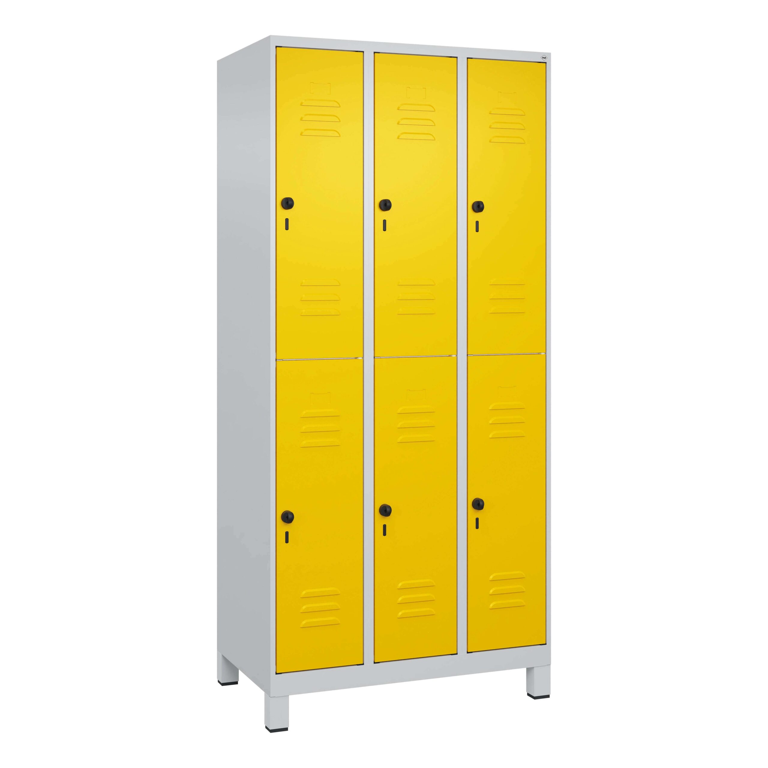 Der C+P Doppel-Garderobenschrank „Classic Plus“: Robuste und funktionale Aufbewahrungslösung in Verkehrsgelb