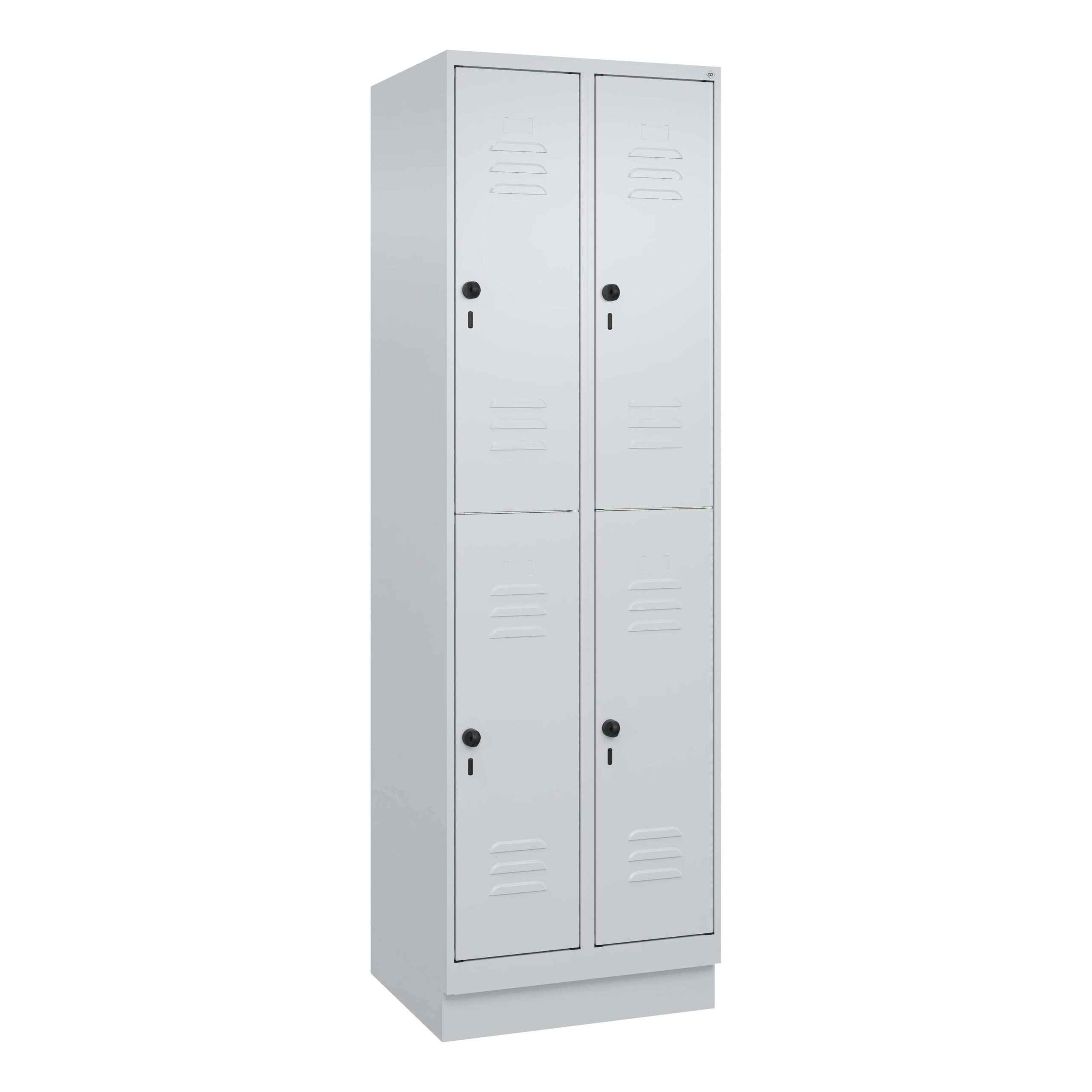 FAQ – Häufig gestellte Fragen zu C+P Doppel-Garderobenschrank „Classic Plus“, Abteilbreite 30 cm, mit Sockel, Lichtgrau (RAL 7035), 195x60x50 cm/ 4 Fächer