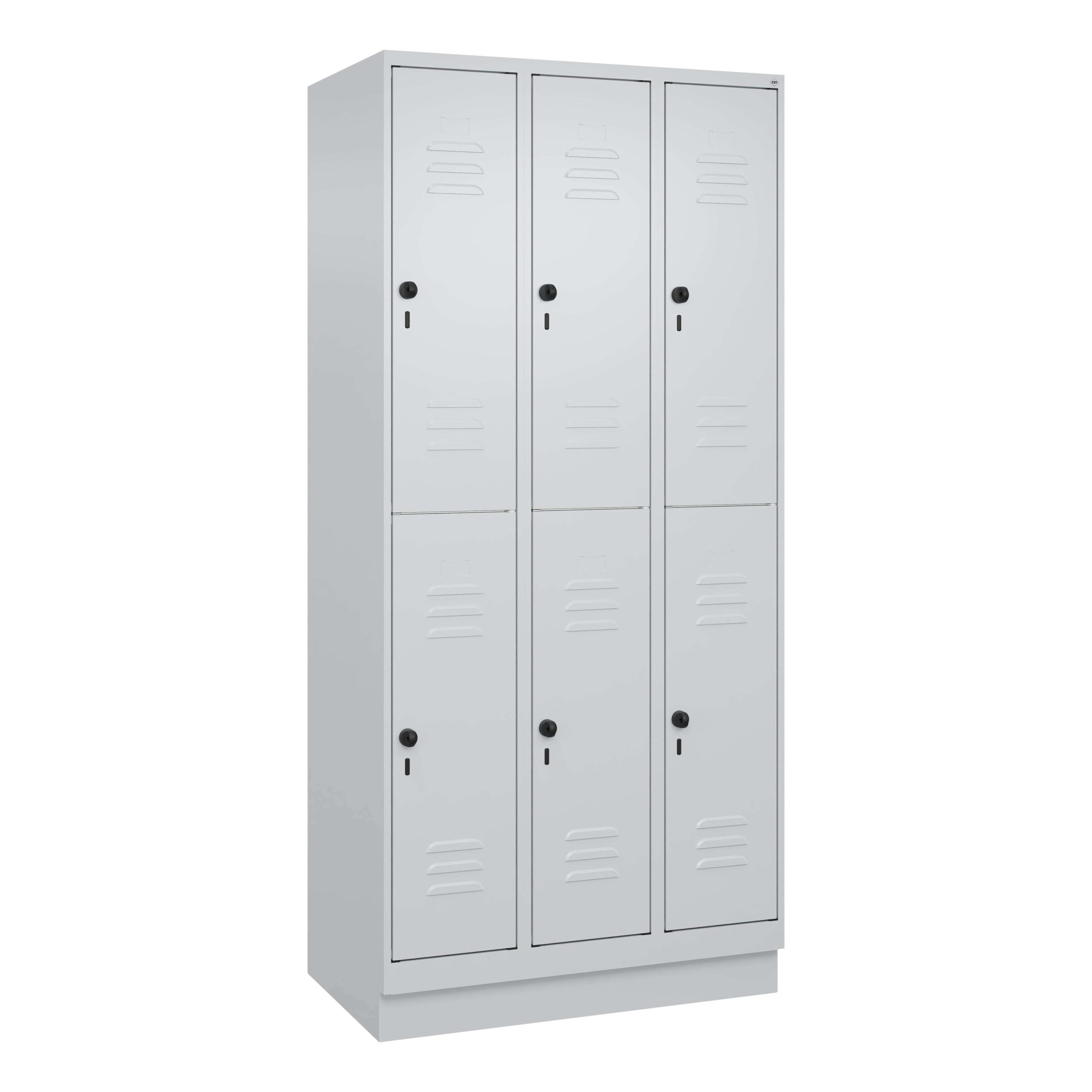 FAQ – Häufig gestellte Fragen zu C+P Doppel-Garderobenschrank „Classic Plus“, Abteilbreite 30 cm, mit Sockel, Lichtgrau (RAL 7035), 195x90x50 cm/ 6 Fächer