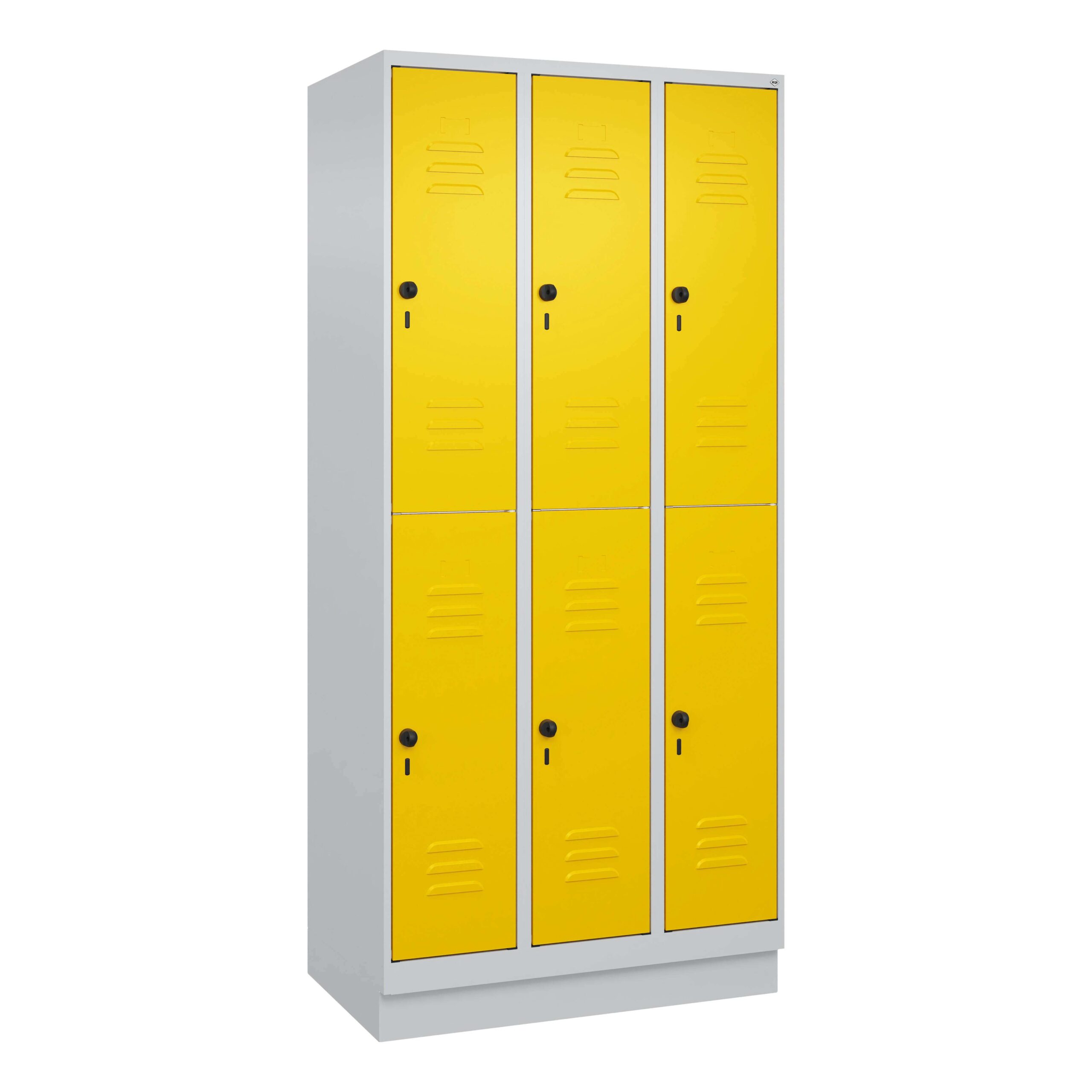 Häufig gestellte Fragen zu C+P Doppel-Garderobenschrank „Classic Plus“, Abteilbreite 30 cm, mit Sockel, Verkehrsgelb (RAL 1023), 195x90x50 cm/ 6 Fächer