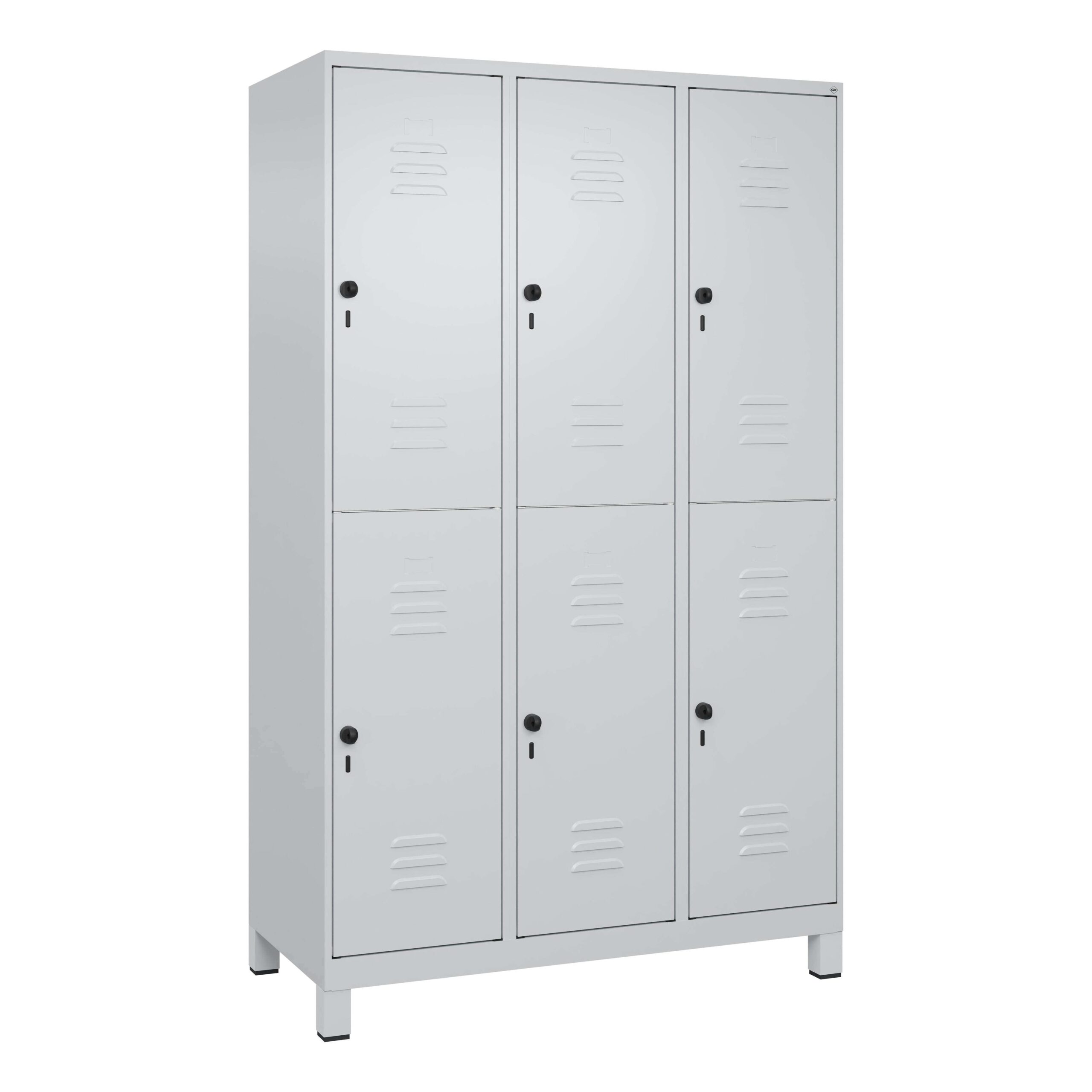 Der C+P Doppel-Garderobenschrank „Classic Plus“ im Lichtgrau (RAL 7035) ist die ideale Wahl für Unternehmen, Sportstätten oder Umkleideräume, die eine robuste und praktische Aufbewahrungslösung für ihre Mitarbeiter oder Mitglieder suchen. Mit seiner großzügigen Abteilbreite von 40 cm und insgesamt sechs Fächern bietet dieser Schrank ausreichend Platz für persönliche Gegenstände und Arbeitskleidung. Seine solide Konstruktion und das durchdachte Design gewährleisten Langlebigkeit und Funktionalität im täglichen Gebrauch.