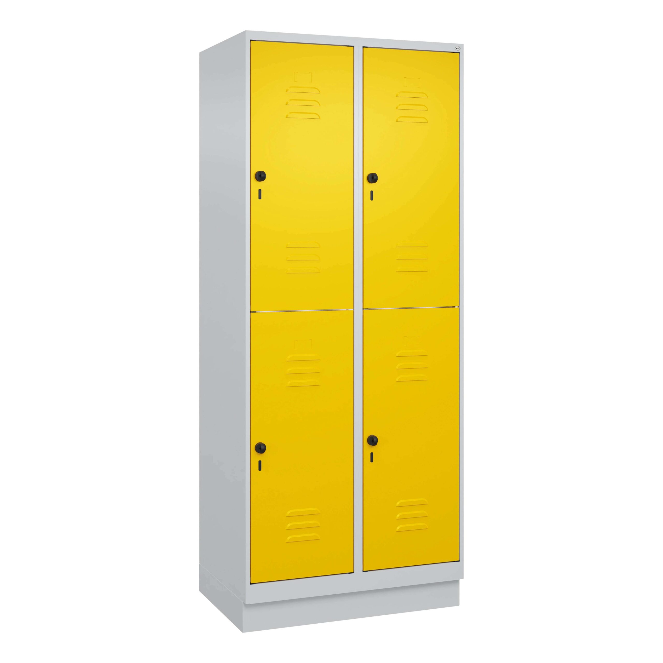 FAQ – Häufig gestellte Fragen zu C+P Doppel-Garderobenschrank „Classic Plus“, Abteilbreite 40 cm, mit Sockel, Verkehrsgelb (RAL 1023), 195x80x50 cm/ 4 Fächer