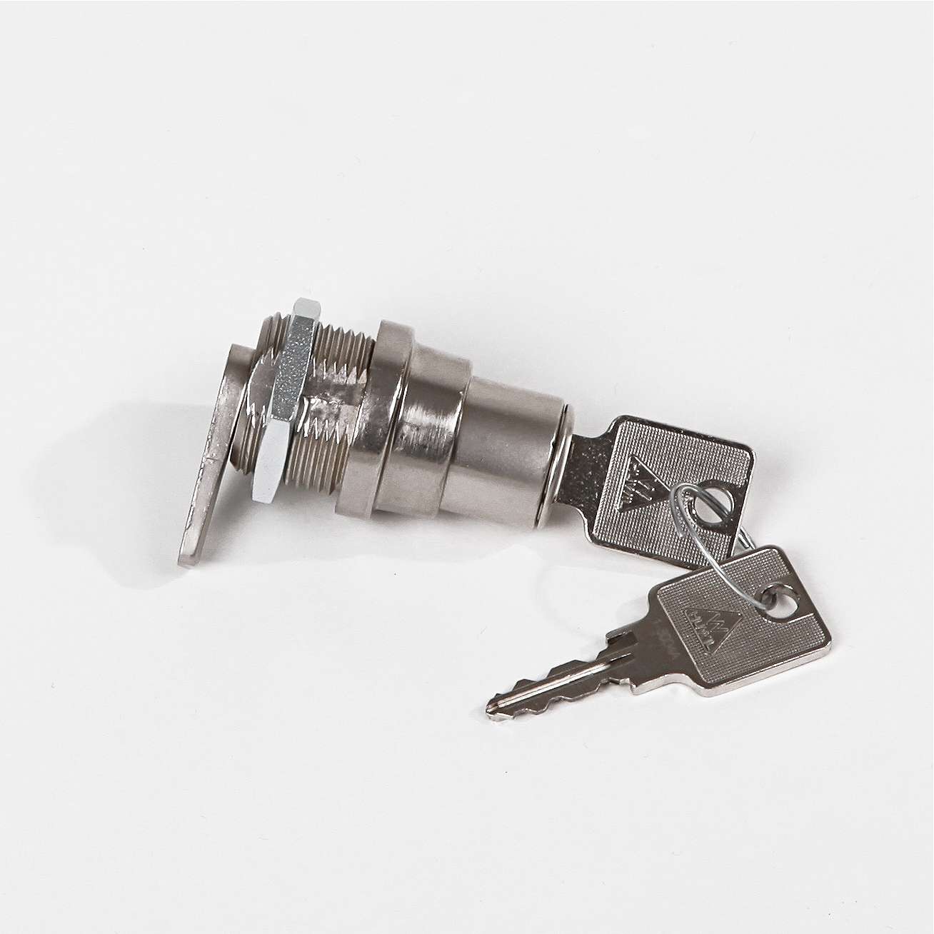 Das System ist zweistufig aufgebaut. Zuerst wird der Schließzylinder mechanisch in die Verriegelungsstellung gebracht, indem er auf den Schrankrahmen gedrückt wird. Erst danach kann die Sicherung durch Drehen des Schlüssels vollständig aktiviert werden. Die Entriegelung erfolgt durch erneutes Drehen des Schlüssels, wodurch der Zylinder wieder in seine Ausgangsposition zurückfährt.