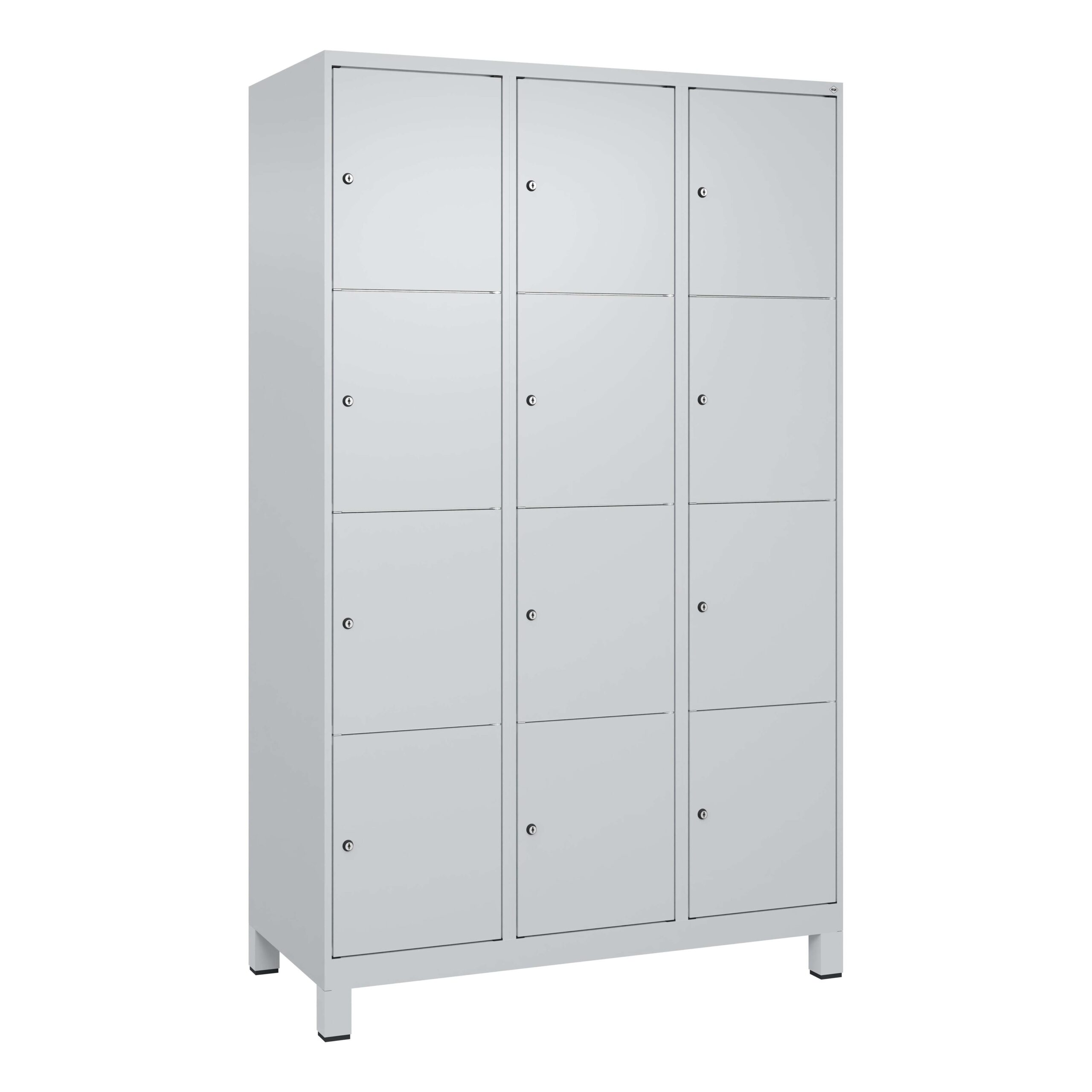 Der C+P Fächerschrank „Classic Plus“ mit 12 Fächern, angeordnet in vier übereinanderliegenden Reihen mit jeweils drei Abteilen, bietet eine durchdachte und platzsparende Lösung für die Aufbewahrung von persönlichen Gegenständen in Umkleideräumen, Büros oder öffentlichen Einrichtungen. Dieses Modell ist ideal für Sportvereine, Fitnessstudios, Unternehmen mit Mitarbeiterumkleiden oder auch für Schulen und Universitäten, wo eine robuste und funktionale Garderobenlösung gefragt ist.