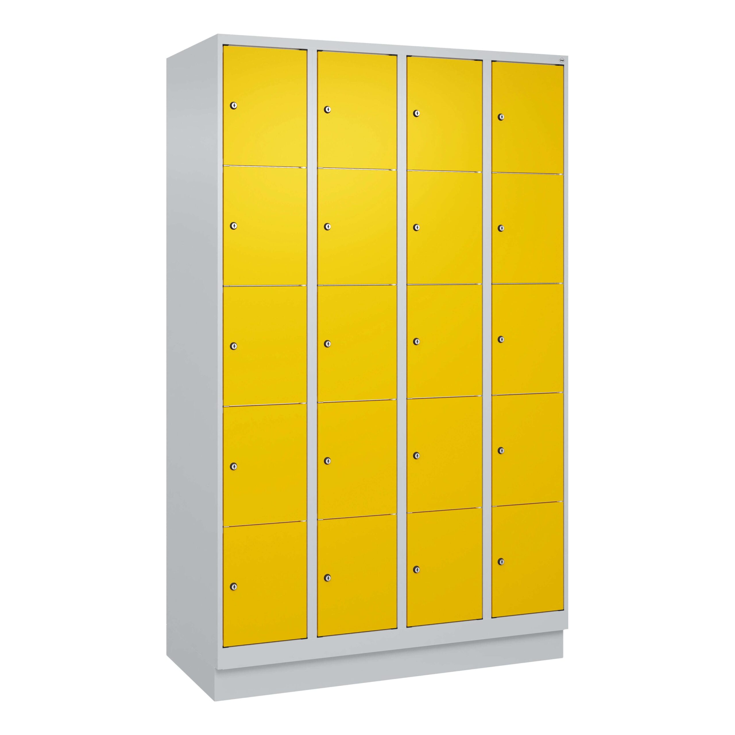 FAQ – Häufig gestellte Fragen zu C+P Fächerschrank „Classic Plus“, 5 Fächer übereinander, Abteilbreite 30 cm, mit Sockel, Verkehrsgelb (RAL 1023), 195x120x50 cm/ 20 Fächer