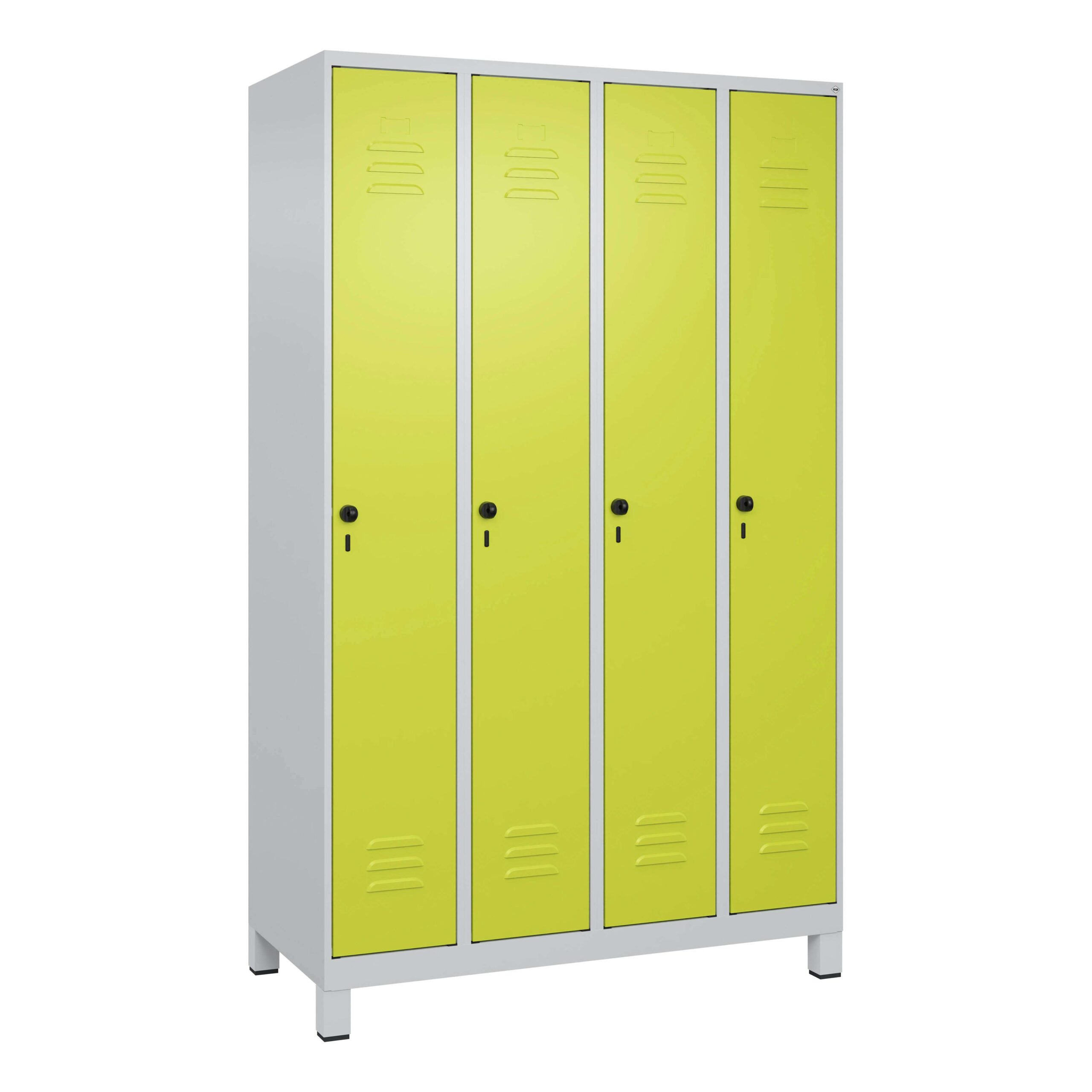 FAQ – Häufig gestellte Fragen zu C+P Garderobenschrank „Classic Plus“, Abteilbreite 30 cm, mit Füßen, Clowngrün (RAL 110 80 60), 195x120x50 cm/ 4 Fächer