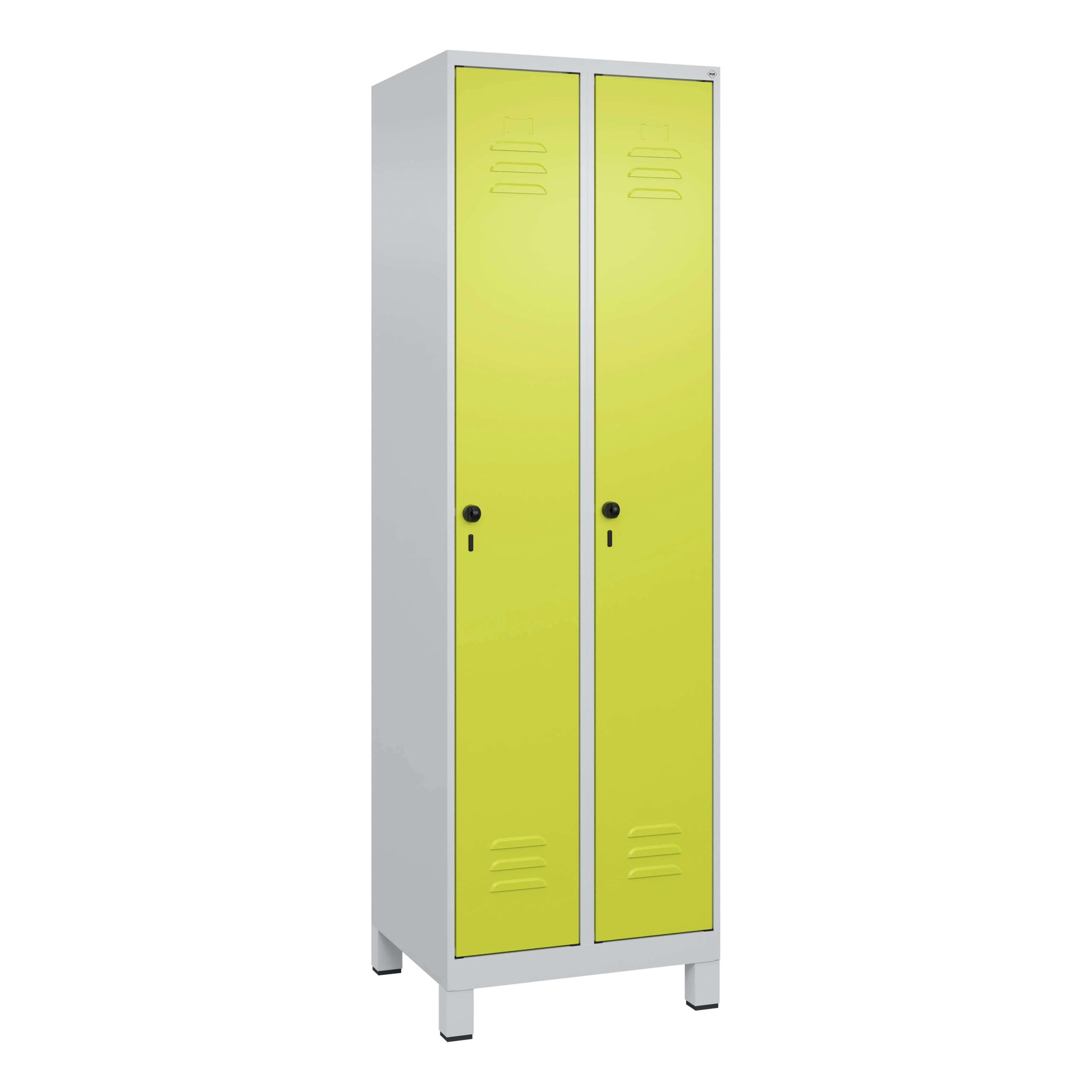 Der C+P Garderobenschrank „Classic Plus“ präsentiert sich in einem dezenten und professionellen Design. Die Farbe Clowngrün (RAL 110 80 60) ist eine lebendige, aber dennoch unaufdringliche Wahl, die sich gut in verschiedene Farbkonzepte von Umgebungen integrieren lässt. Die seidenmatte Pulverbeschichtung verleiht dem Schrank eine hochwertige Optik und Haptik, die sowohl funktional als auch ästhetisch ansprechend ist. Die klaren Linien und die solide Verarbeitung unterstreichen den Anspruch an Qualität und Langlebigkeit. Die integrierten Füße tragen nicht nur zur Funktionalität bei, sondern verleihen dem Schrank auch eine gewisse Leichtigkeit im Erscheinungsbild.