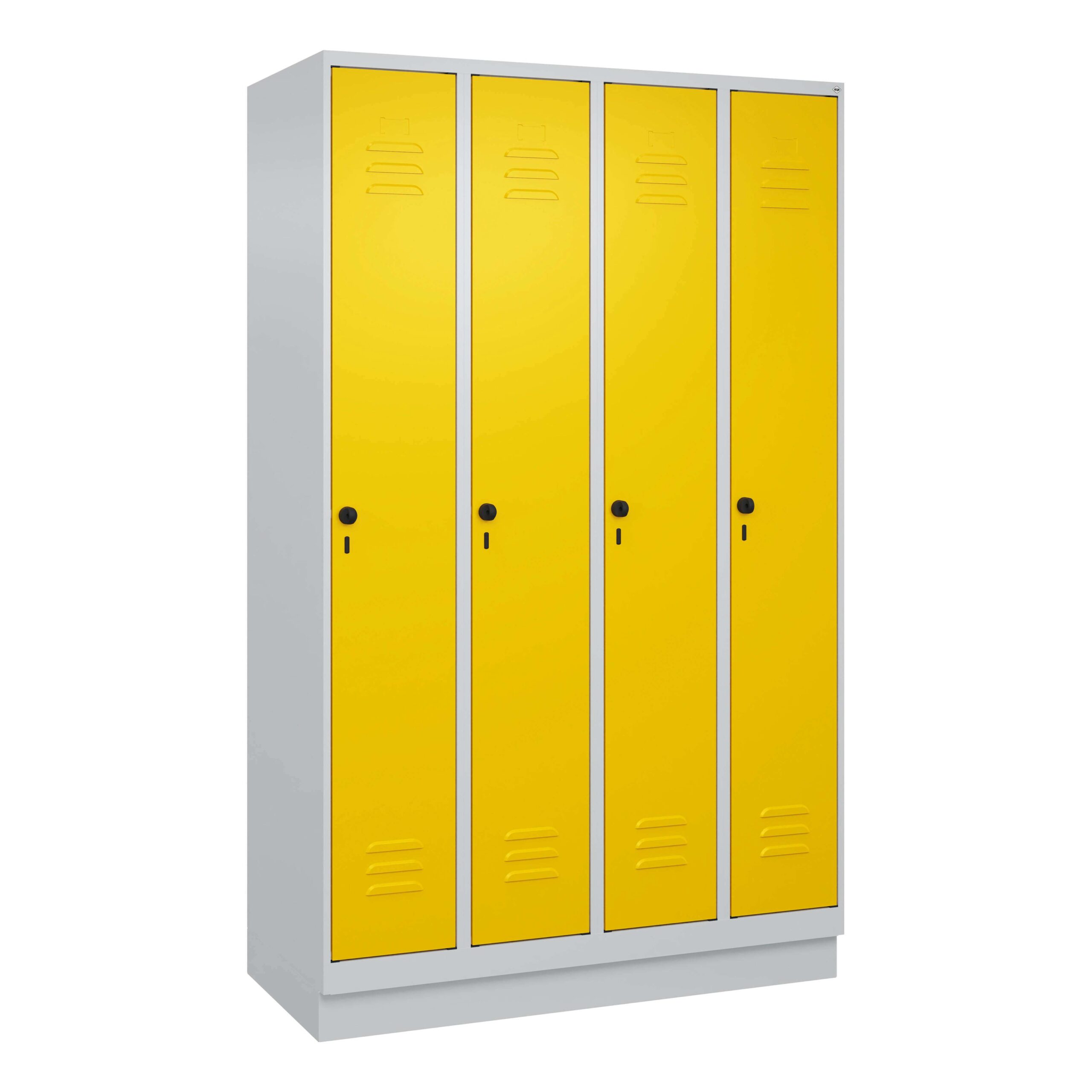 FAQ – Häufig gestellte Fragen zu C+P Garderobenschrank „Classic Plus“, Abteilbreite 30 cm, mit Sockel, Verkehrsgelb (RAL 1023), 195x120x50 cm/ 4 Fächer