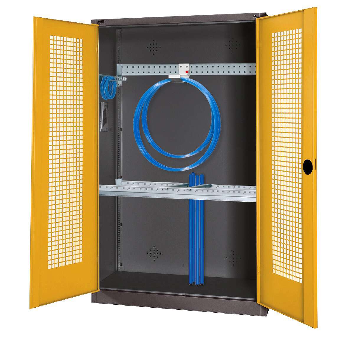 - Effiziente Belüftung: Die Lochblech-Türen sorgen für eine gute Luftzirkulation und beugen Feuchtigkeitsbildung vor.