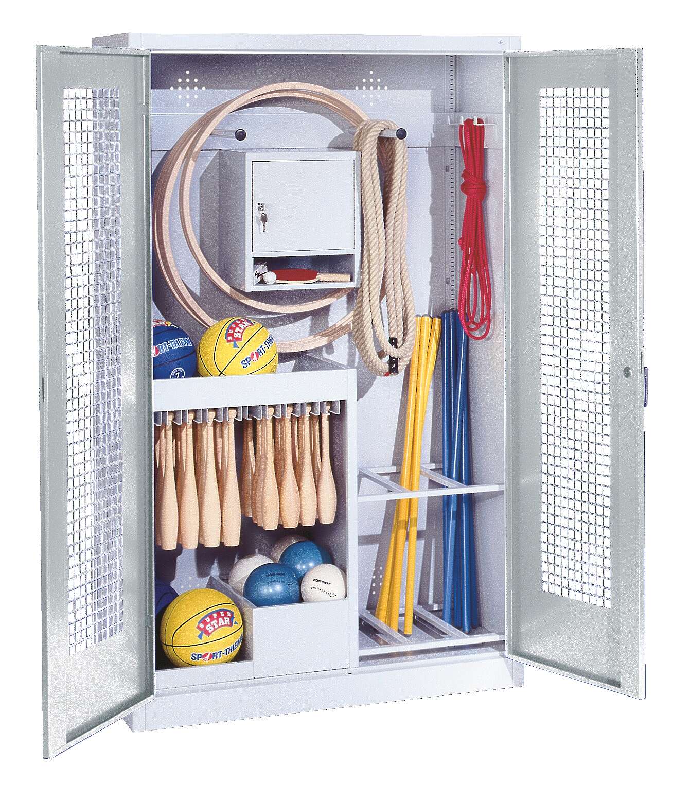 C+P Sportgeräteschrank mit Lochblech-Flügeltüren (Typ 1): Maximale Ordnung und Sicherheit für Ihre Sportausrüstung