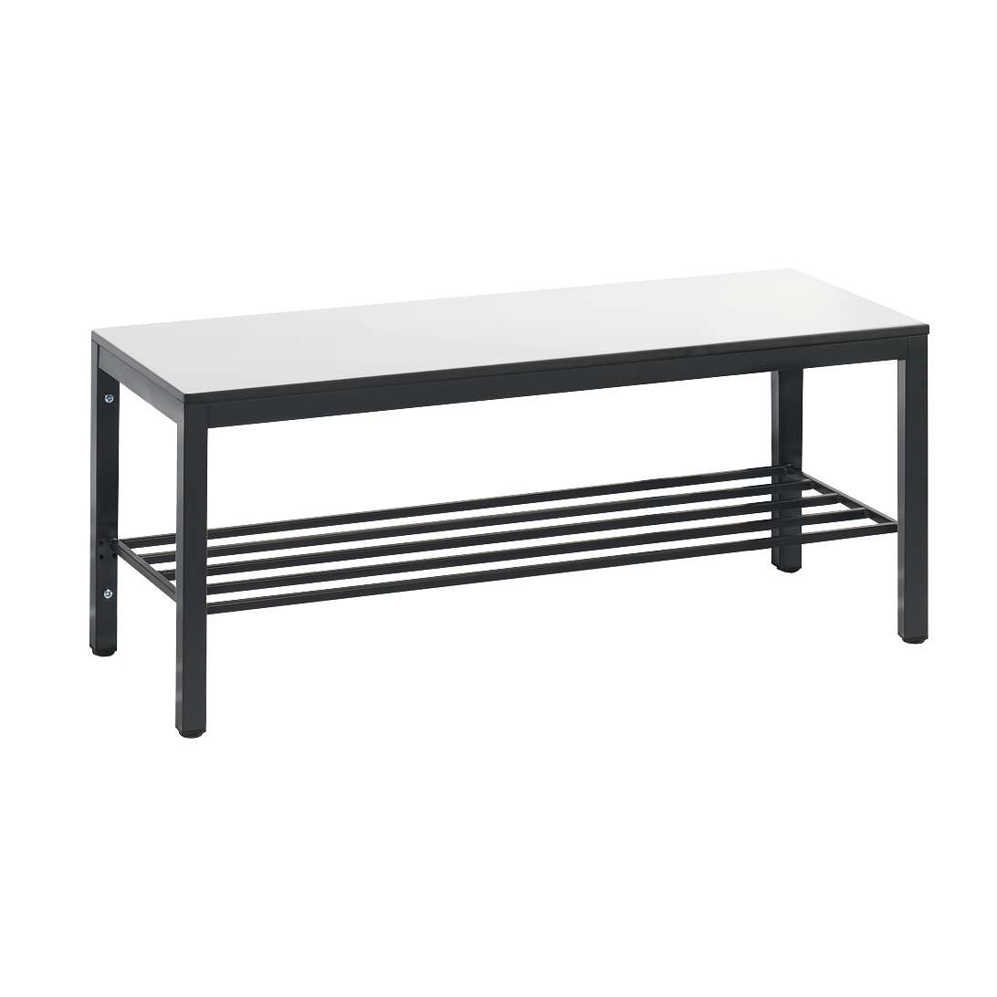 - Ästhetisches Design: In einem neutralen Verkehrsweiß (RAL 9016) gehalten, fügt sich die Bank harmonisch in jede Garderobe ein.