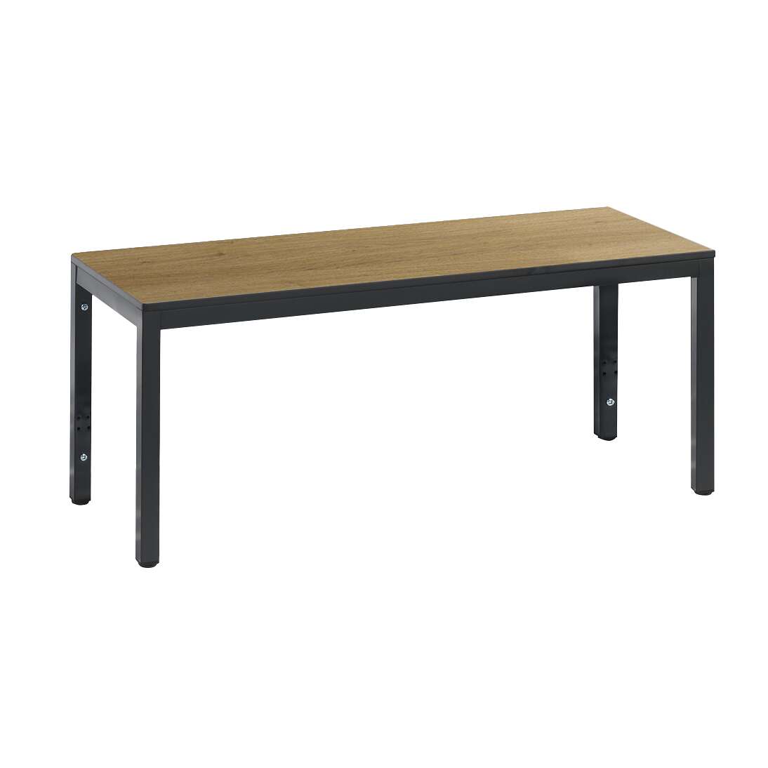 Die C+P Umkleidebank in Eiche Sereno fügt sich nahtlos in jedes moderne oder klassisch gestaltete Ambiente ein. Das Dekor „Eiche Sereno“ imitert die authentische Maserung und Farbgebung von Eichenholz, was für eine warme und natürliche Ausstrahlung sorgt. Diese Ästhetik trägt maßgeblich zur Schaffung einer angenehmen Atmosphäre in Umkleidebereichen bei, die oft als rein funktional und wenig ansprechend wahrgenommen werden. Die Oberfläche ist nicht nur optisch ansprechend, sondern auch angenehm unter den Füßen und lädt zum Verweilen ein. Die klare Linienführung und die durchdachte Konstruktion ohne Schuhrost unterstreichen den minimalistischen und modernen Anspruch des Designs. Dies erleichtert zudem die Reinigung des Bodens unter der Bank erheblich und trägt zu einer verbesserten Hygiene bei.