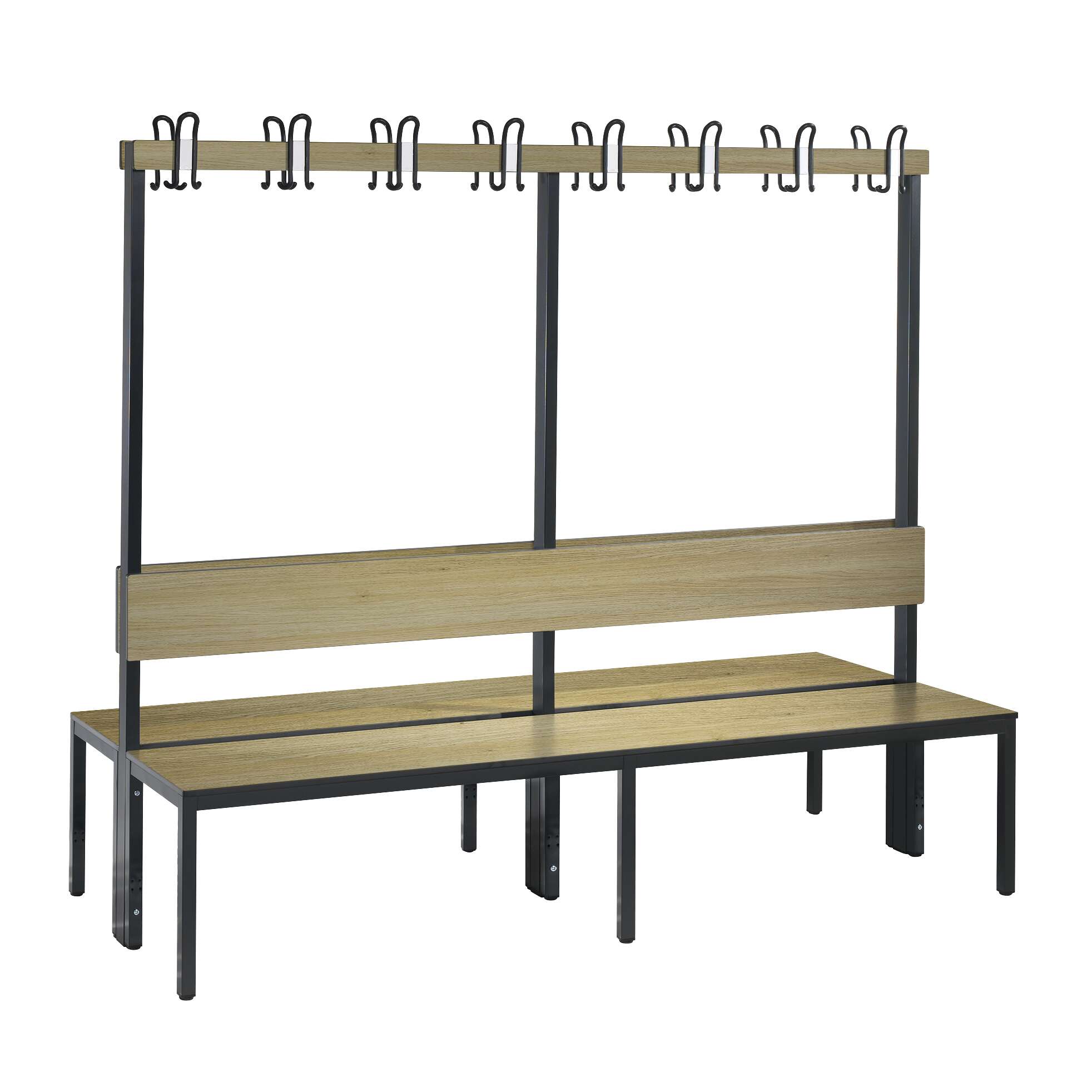 Die doppelseitige Ausführung und die Länge von 2 Metern machen sie ideal für Bereiche, in denen eine optimale Raumnutzung und eine hohe Kapazität gefragt sind. Die Möglichkeit, von beiden Seiten auf die Bank zuzugreifen, maximiert die Effizienz in oft beengten Umkleideräumen.