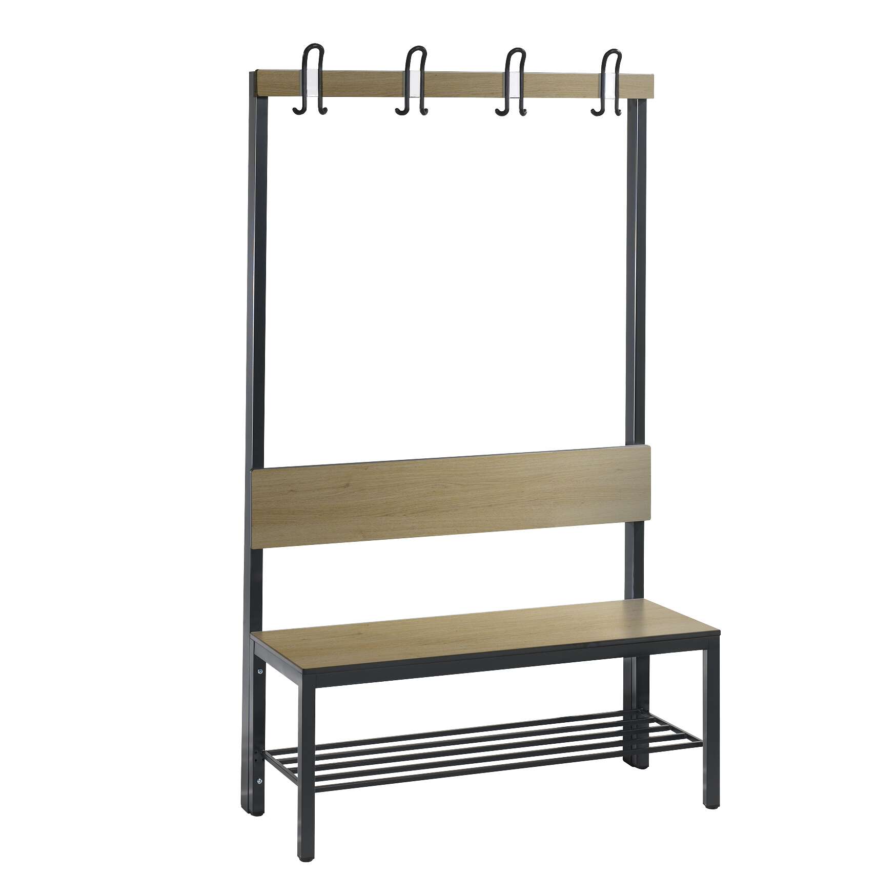 Die C+P Umkleidebank für Feuchträume mit Rückenlehne, Eiche Sereno, 1 m, Mit Schuhrost ist die ideale Lösung für jeden Bereich, der Feuchtigkeit ausgesetzt ist und eine robuste, langlebige und stilvolle Sitzgelegenheit erfordert. Konzipiert für Schwimmbäder, Fitnessstudios, Saunen, Wellnessbereiche und industrielle Umgebungen, kombiniert diese Bank Funktionalität mit einem ansprechenden Design, das sich nahtlos in verschiedene Umgebungen einfügt.