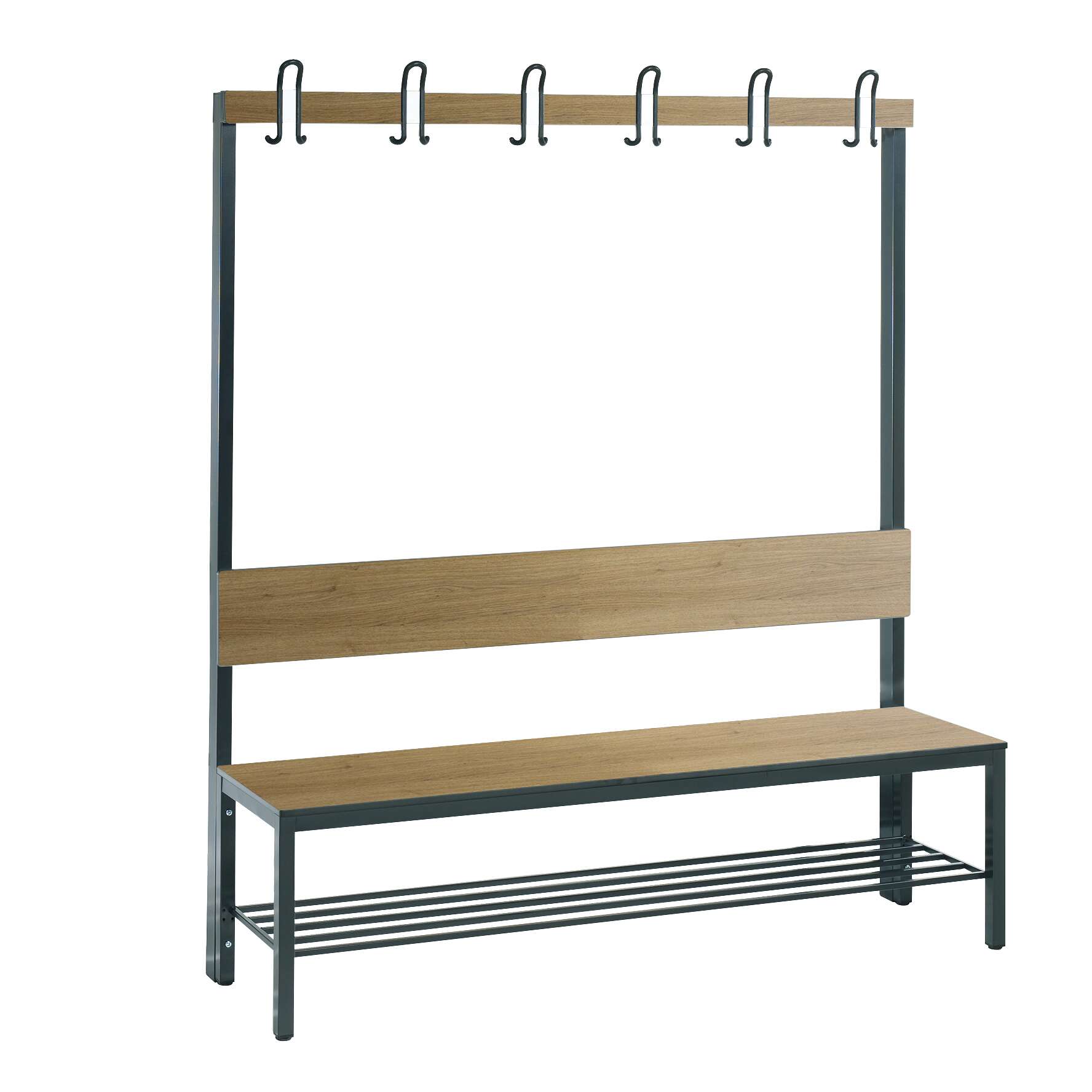 Die stabile Konstruktion mit integrierter Rückenlehne und Schuhrost macht sie zu einer praktischen und komfortablen Ergänzung für jeden Umkleidebereich, der auf Funktionalität und Langlebigkeit ausgelegt ist.