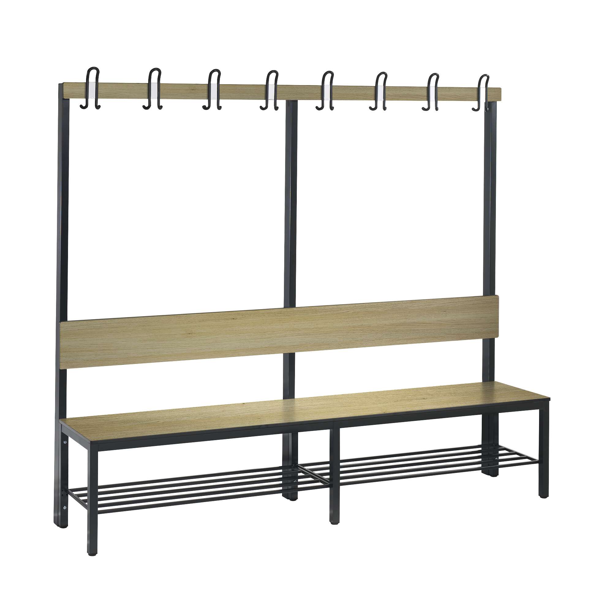 Die Sitzfläche besteht aus Massivholz der Eiche Sereno. Dieses Holz wird speziell behandelt, um seine Beständigkeit gegenüber Feuchtigkeit zu erhöhen und Verformungen vorzubeugen, was es ideal für den Einsatz in Umkleiden und Nassbereichen macht.