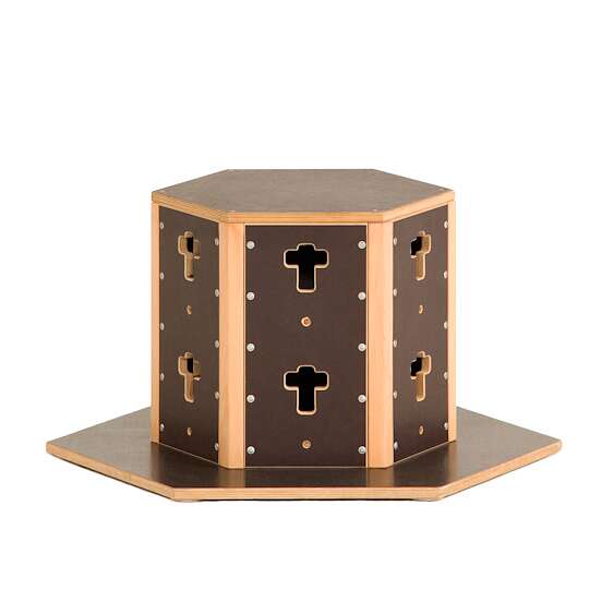 Das Element ist aus witterungsbeständigem Stahl gefertigt und mit einer Korrosionsschutzbeschichtung versehen, was einen Einsatz im Freien ermöglicht. Dennoch wird für eine maximale Langlebigkeit und den Erhalt der Oberflächenbeschaffenheit empfohlen, das Element bei extremen oder langanhaltenden widrigen Wetterbedingungen zu schützen oder drinnen zu lagern.