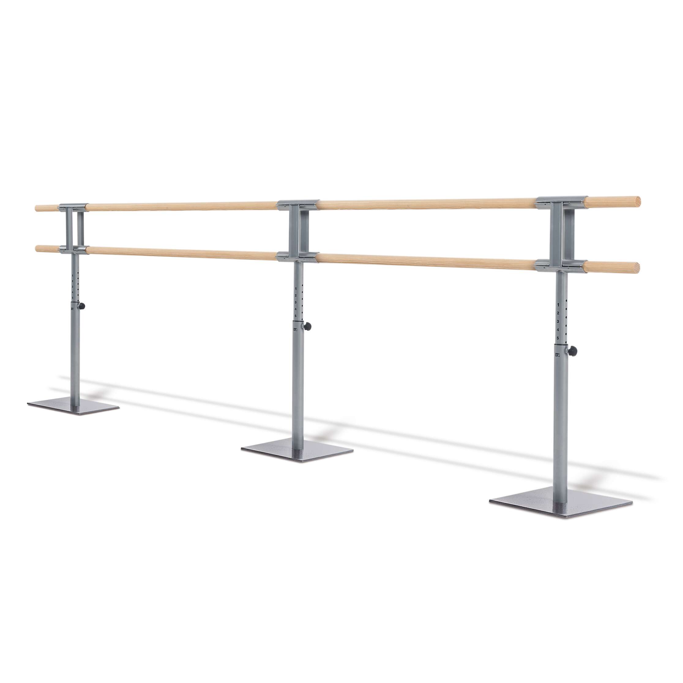 Ein herausragendes Merkmal der „Giselle“-Doppelballettanlage ist ihre stufenlose und präzise Höhenverstellung. Dies ermöglicht es Trainern und Tänzern, die Anlage exakt auf die individuellen Körpergrößen und Trainingsanforderungen einzustellen. Ob für Übungen, die eine tiefere Position erfordern, oder für solche, die eine erhöhte Unterstützung benötigen – die Anpassungsfähigkeit ist beispiellos. Diese Flexibilität ist entscheidend, um die korrekte Ausrichtung und Technik zu fördern und Überlastungen oder Verletzungen vorzubeugen. Die Mechanik der Höhenverstellung ist robust und einfach zu bedienen, sodass ein schneller Wechsel zwischen verschiedenen Einstellungen möglich ist, ohne den Trainingsfluss zu unterbrechen.