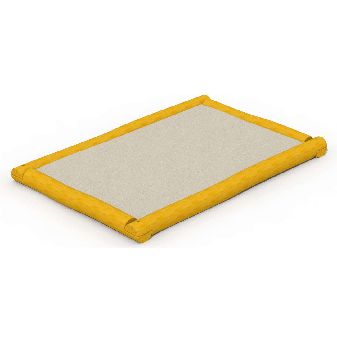 Typischerweise verfügen Sandkästen dieser Bauart über eine umlaufende Kante, die als natürliche Sitzgelegenheit dient. Dies ermöglicht es Kindern und Betreuungspersonen, bequem am Rand des Sandkastens Platz zu nehmen.