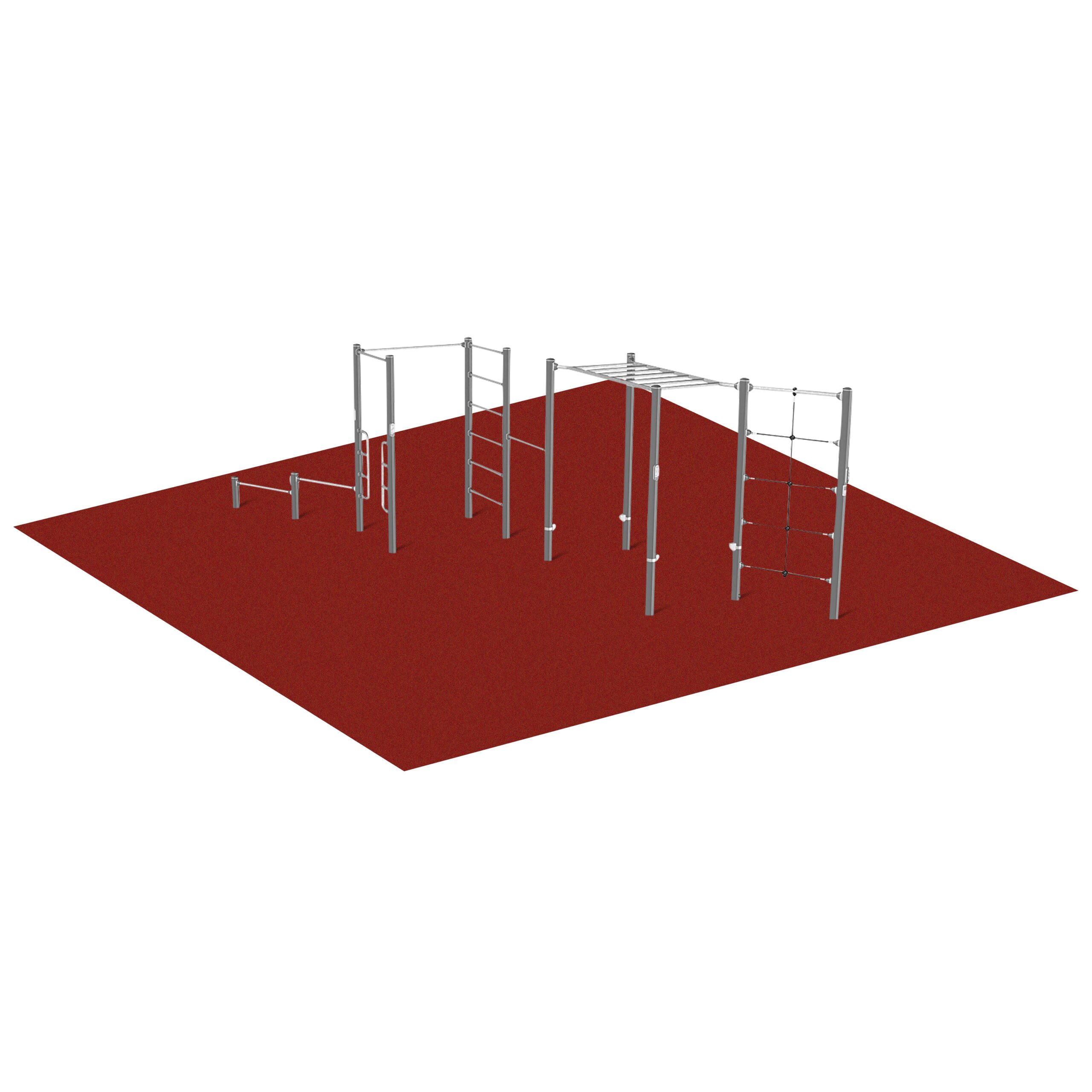 Fugenloser Fallschutzbelag für Kompan Outdoor-Fitness-Stationen, Kompan Outdoor-Fitness-Station „Pro 3“: Sicherheit und Langlebigkeit für Ihre Außenbereiche