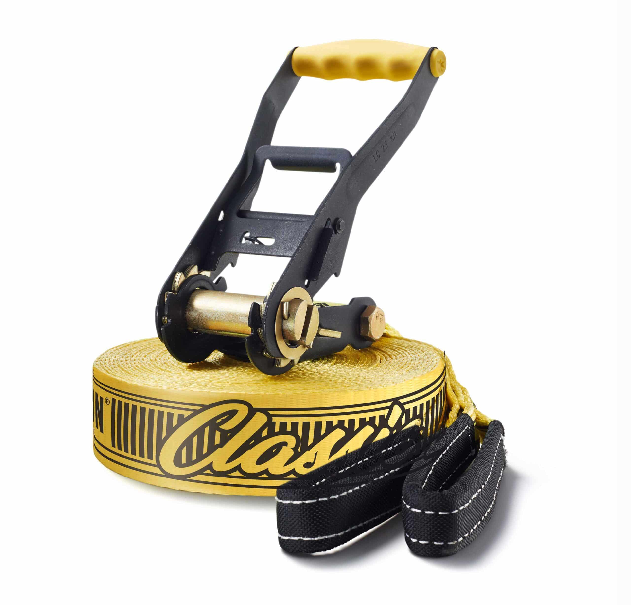 Die „Classic Line“ ist für den Einsatz im Freien konzipiert, auch in der Nähe von Seen oder Flüssen. Es ist jedoch wichtig, die Slackline nach Gebrauch gründlich zu trocknen, bevor Sie sie lagern, um Korrosion des Ratschensystems und Materialschäden am Gurtband zu vermeiden. Achten Sie auf eine sichere Umgebung, insbesondere wenn Kinder beteiligt sind.