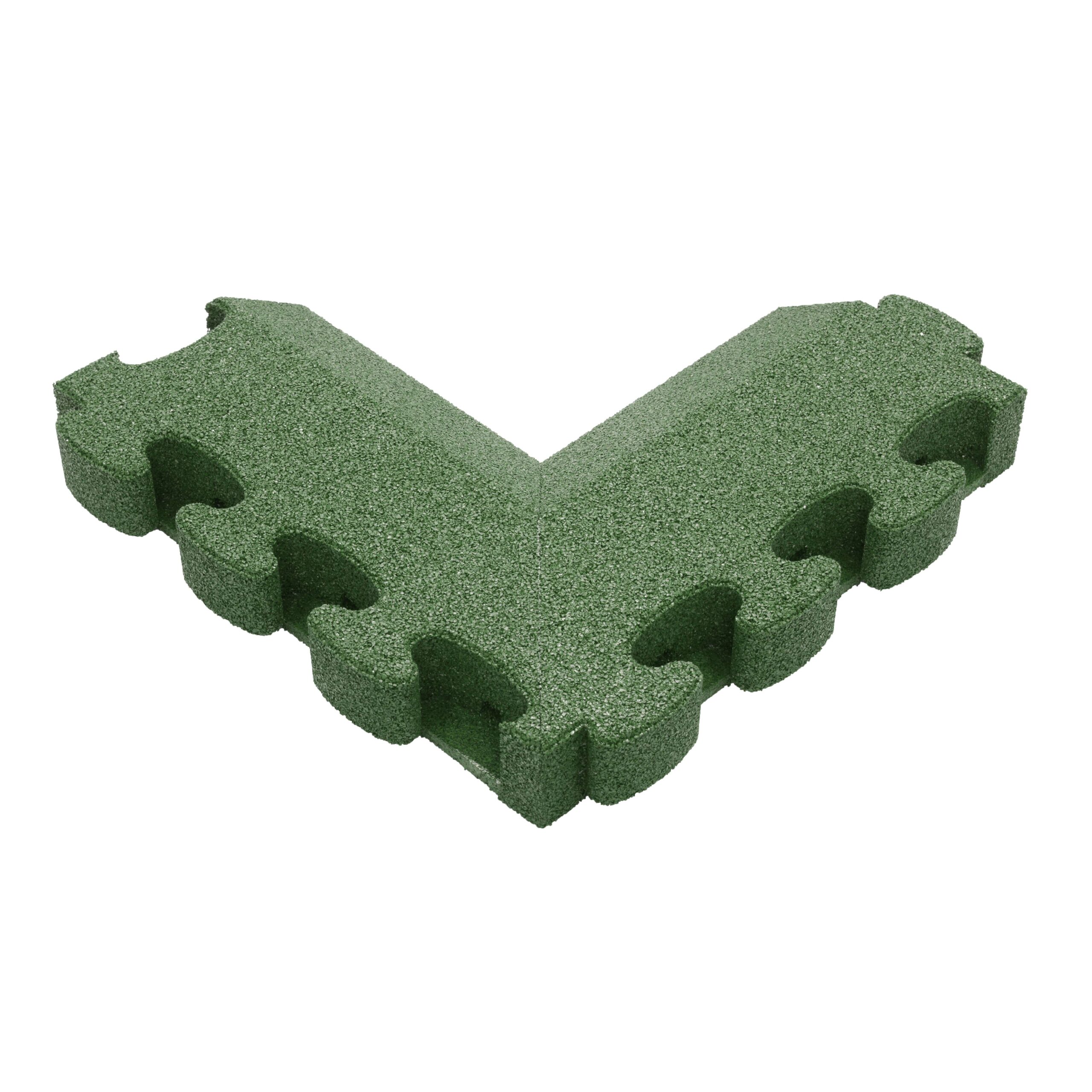 FAQ – Häufig gestellte Fragen zu Gum-Tech Negatives Eckstück „Abgeschrägt“ für Fallschutzplatten, Grün, 8 cm