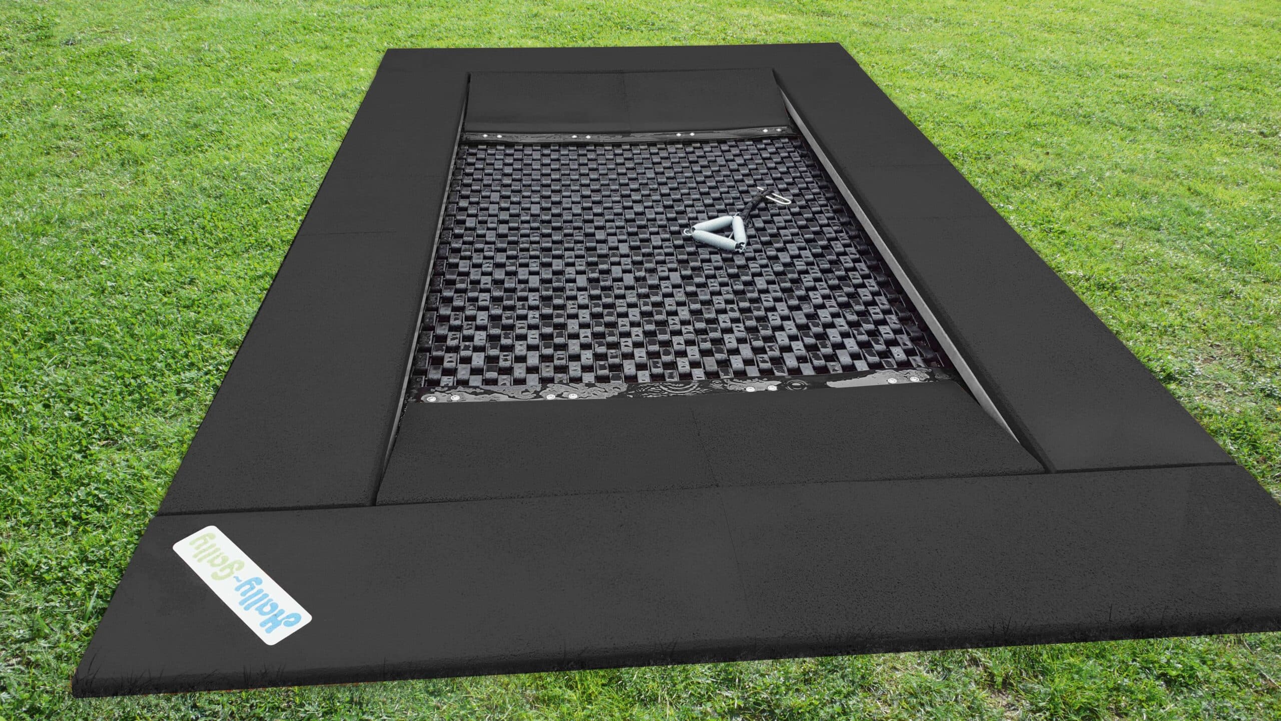 | Sprungtuchmaterial | Speziell entwickeltes, reißfestes und dennoch elastisches Polypropylen-Gewebe. Dieses Material bietet eine optimale Sprungkraft und gleichzeitig eine hohe Strapazierfähigkeit, die auch regelmäßiger Nutzung standhält. Die fein gewebte Struktur sorgt für eine angenehme Haptik. |