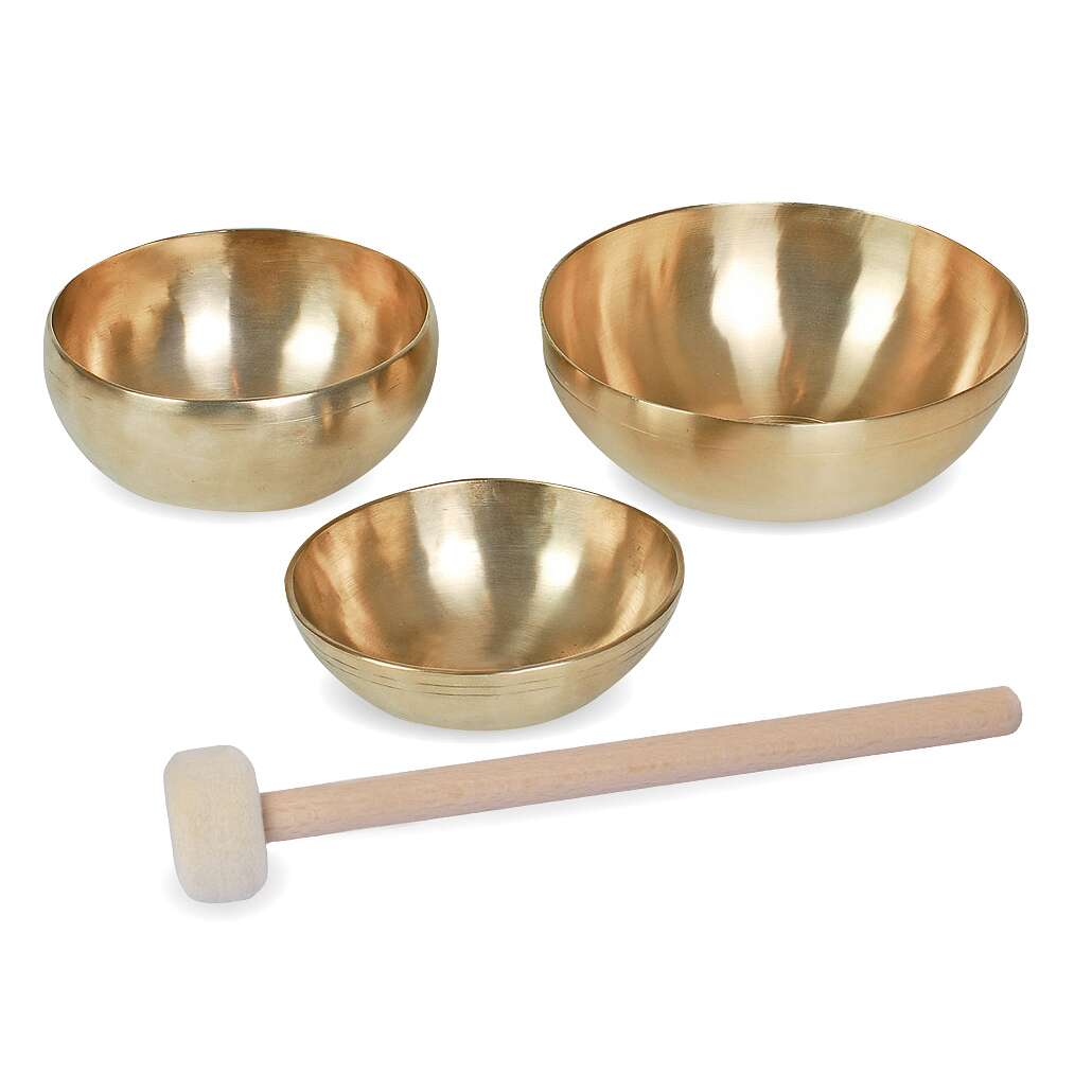 Jede Klangschale im Set hat aufgrund ihrer Größe und Dicke leicht unterschiedliche Klangfrequenzen und eine eigene Klangfarbe. Dies ermöglicht es Kindern, die Vielfalt der Töne zu erkunden und zu lernen, wie unterschiedliche Dimensionen eines Instruments seinen Klang beeinflussen.