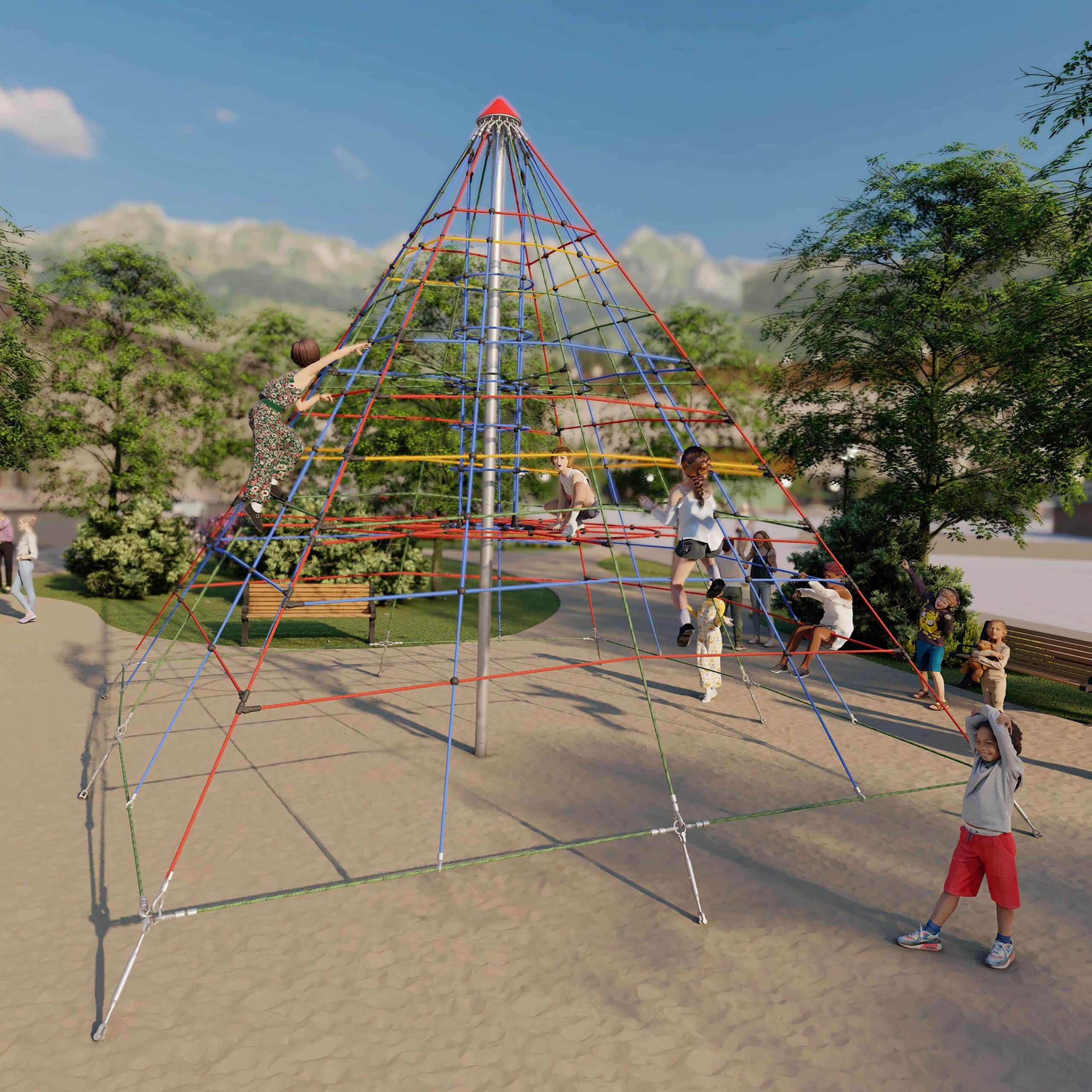 - Regt die Fantasie an: Die Seilpyramide lädt zu Rollenspielen und kreativen Abenteuern ein – sie kann zur Piratenburg, zum Raumschiff oder zum geheimen Versteck werden.