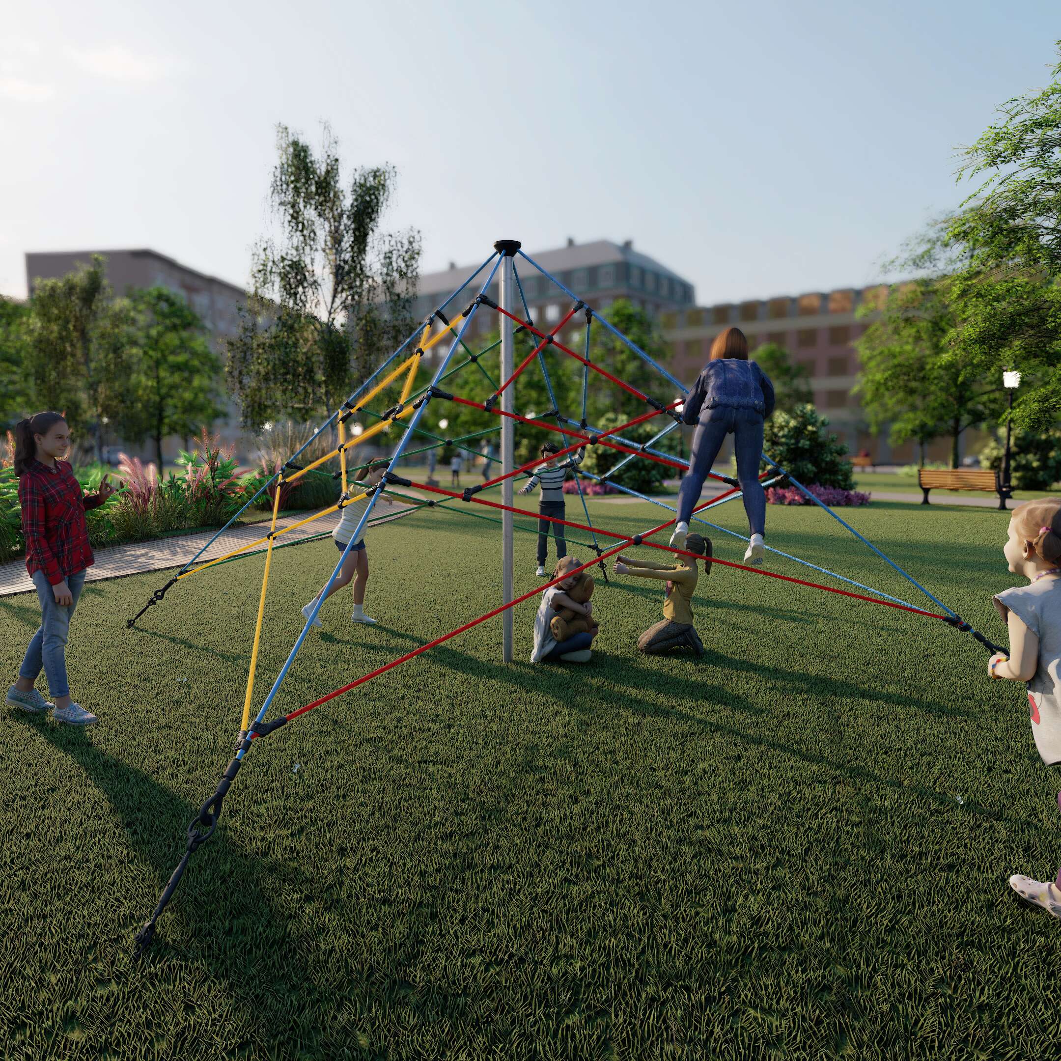 - Anregung der Fantasie: Die Seilpyramide lädt zu vielfältigen Spielideen ein und regt die Fantasie der Kinder an.
