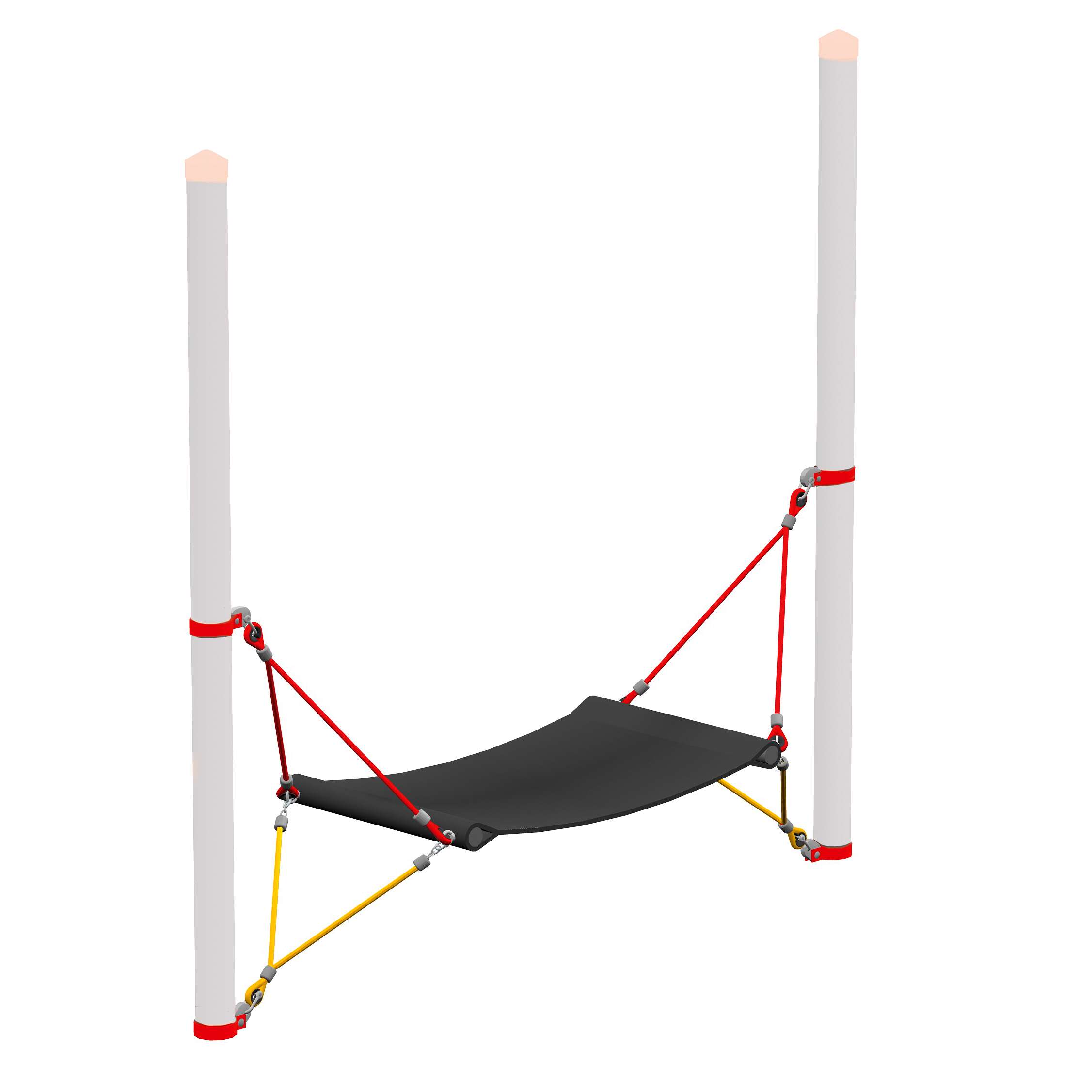 | Konstruktion | Modulare Bauweise des Vario-Kletterparks, Einzelelement „Gummi-Hängematte“ ist für die sichere Anbringung an mehreren Verankerungspunkten konzipiert. |