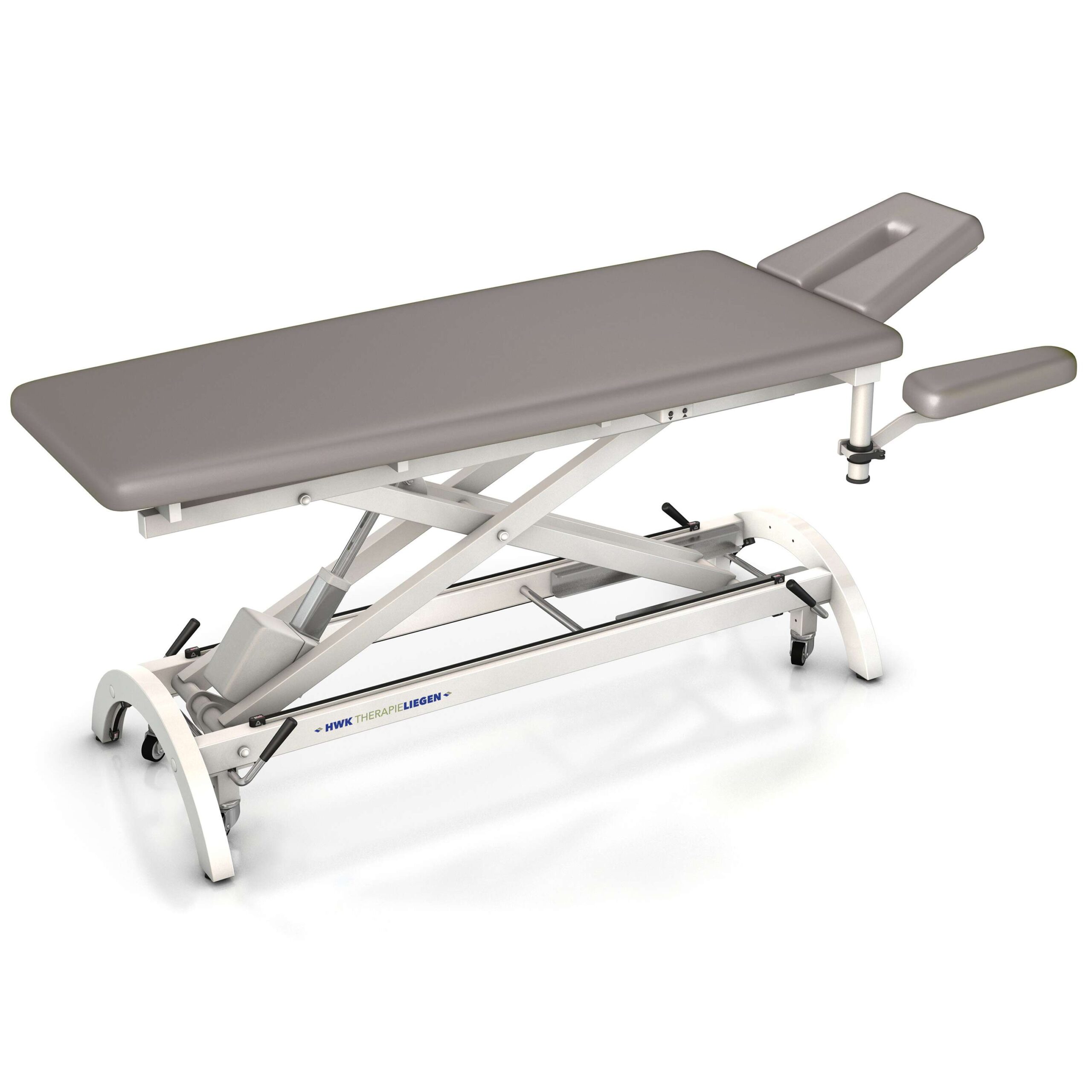 Die zentrale Stärke der HWK Therapieliege „Impuls E4“ liegt in ihrer präzisen und intuitiven elektrischen Höhenverstellung. Ermöglicht wird dies durch einen leistungsstarken und zuverlässigen Elektromotor, der eine stufenlose Anpassung der Liegehöhe erlaubt. Dies entlastet das Personal erheblich, da keine manuelle Kraftanstrengung mehr erforderlich ist, um die Liege auf die optimale Arbeitshöhe für unterschiedliche Behandlungen und Patientengrößen einzustellen. Die gleichmäßige und sanfte Verstellung sorgt zudem für ein beruhigendes und sicheres Gefühl beim Patienten, wodurch die therapeutische Atmosphäre positiv beeinflusst wird.