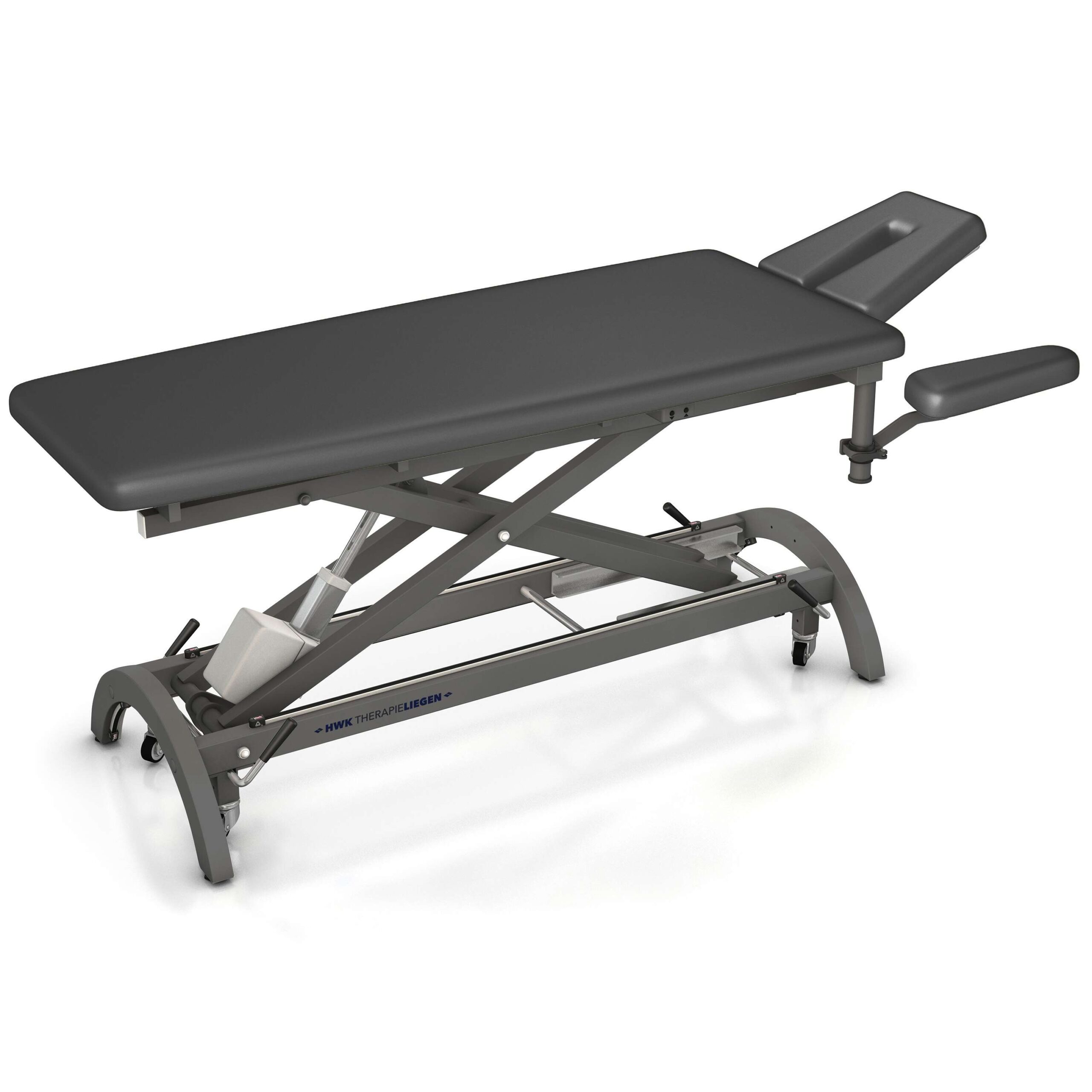 Der Rahmen der HWK Therapieliege „Impuls E4“ ist aus robustem Stahl gefertigt und mit einer langlebigen Pulverbeschichtung in einem modernen Graualuminium-Ton versehen.