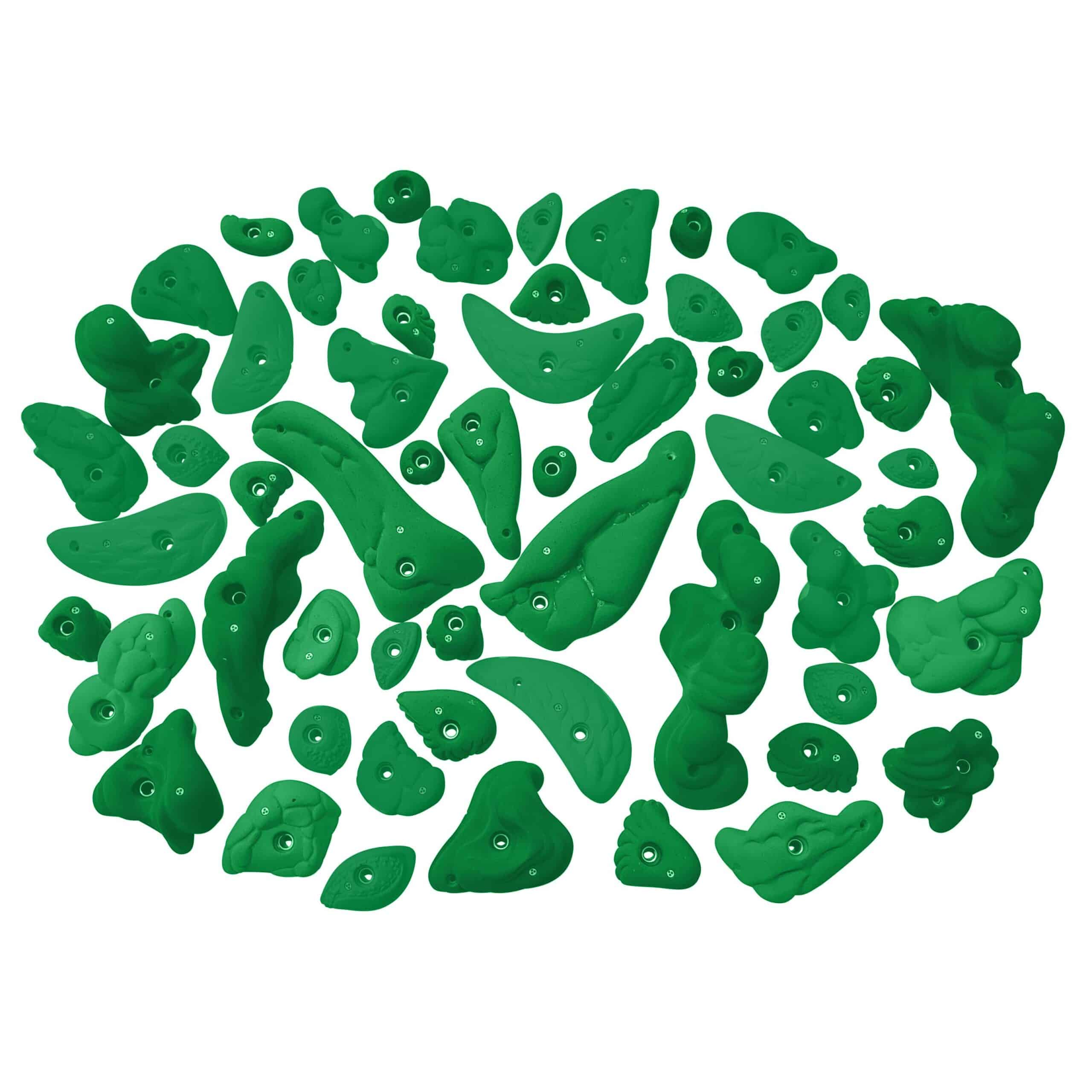 Die genaue Anzahl der Griffe variiert je nach spezifischem Produktangebot. Das Set ist so konzipiert, dass es eine gute Grundlage für eine Kletterroute bietet.