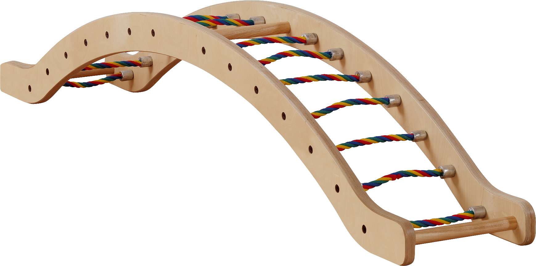 | Abmessungen (ca.) | Länge der Wippe: 150-200 cm; Höhe der Seilsprossen: individuell einstellbar oder feste Abstände (typischerweise 30-40 cm); Breite der Wippe: 30-40 cm. Maximale Traglast: 75 kg pro Nutzer, gesamt 150 kg. |
