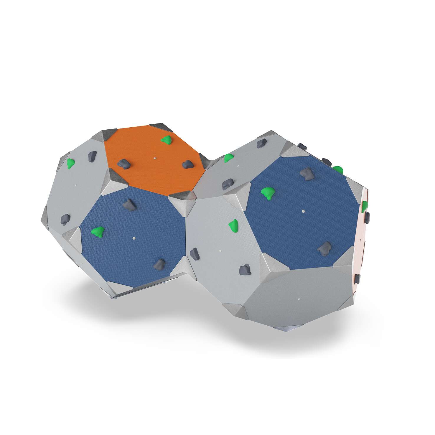 | Konstruktionsweise | Modulares Würfeldesign mit versetzten Ebenen und unterschiedlichen Griff- und Trittpunkten. Ermöglicht vielfältige Kletterrouten und Spielkombinationen. |
